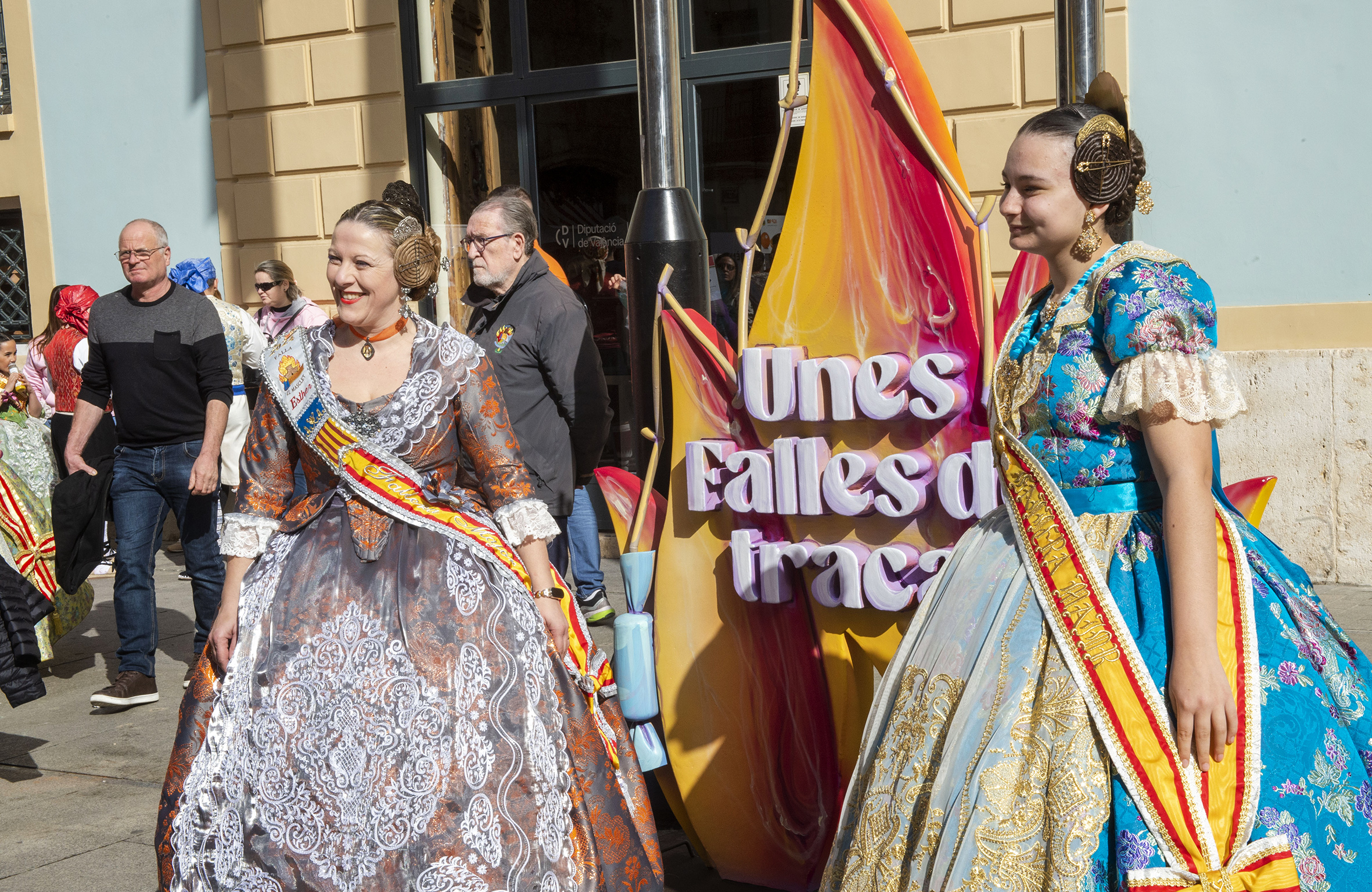 En esta ocasión, la Recepción se ha dividido en dos jornadas que han convertido la plaza Manises en el epicentro de la actividad fallera. El miércoles desfilaron por los palacios de la Diputación 53 juntas locales de otros tantos municipios valencianos. El presidente de la corporación, Vicent Mompó, y las vicepresidentas Natàlia Enguix y Reme Mazzolari, acompañaron en todo momento a las Falleras Mayores de Valencia, Mª Estela Arlandis y Marina García, en un acto que reconoció “la repercusión de las Fallas en prácticamente todas las comarcas, de una fiesta que va más allá del Cap i Casal como se demuestra cada año en la recepción organizada por la Diputación”, señaló Mompó.