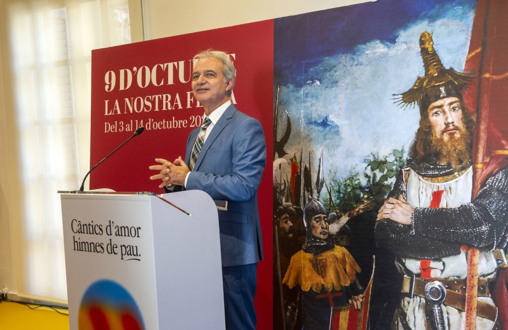 La Diputació de València convida a tota la ciutadania a participar en les seues activitats organitzades per a celebrar el 9 d’Octubre. Es mostrarà la Real Senyera de Blasco Ibáñez i està programada l’activitat ‘Sona la música’, una concentració de més de 250 músics de banda que interpretarà peces com El Cant del Valencià o l’Himne Regional, baix la batuta del mestre Juan José Navarro. També es realitzarà la presentació del vídeo ‘El Cant d’Estil Valencià’, realitzat per l’àrea de Foment de l’Ús del Valencià de la Diputació i el Passacarrer de les Comarques que discorrerà entre el carrer Serrans i la plaça Manises.