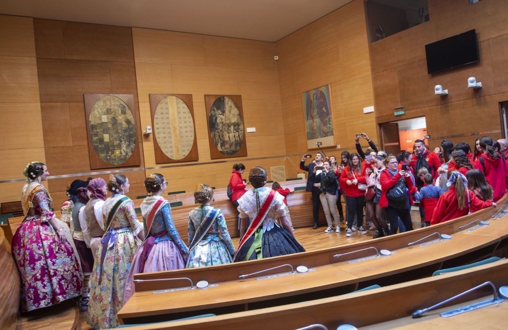- Les falleres i fallers han recorregut durant la matinal les diferents estades dels palaus de la Batlia i els Scala, inclosa la mostra sobre Sorolla que acull el Saló de Respecte de la Diputació