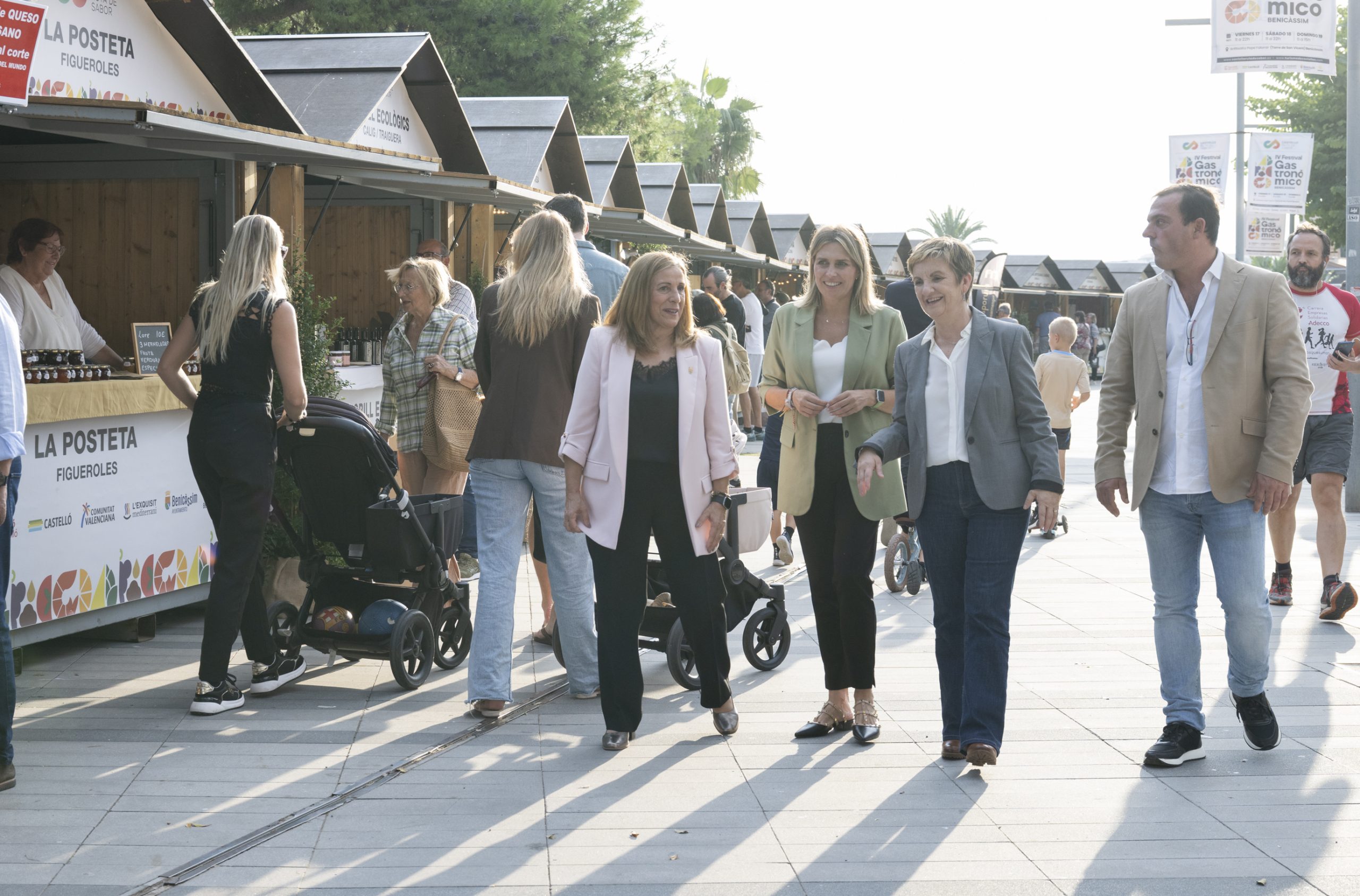 La dirigente provincial, junto a la consellera de Innovación, Industrial, Comercio y Turismo, Marián Cano, el vicepresidente y responsable del área Turística, Andrés Martínez, y la alcaldesa de Benicàssim, Susana Marqués, ha visitado esta tarde el certamen gastronómico ubicado en el anfiteatro Pepe Falomir junto a la Torre Sant Vicent. Un espacio que hasta el domingo 19 de octubre contempla un amplio programa de actividades y muestras que giran alrededor de la excelencia de los productos de ‘Castelló Ruta de Sabor’.
