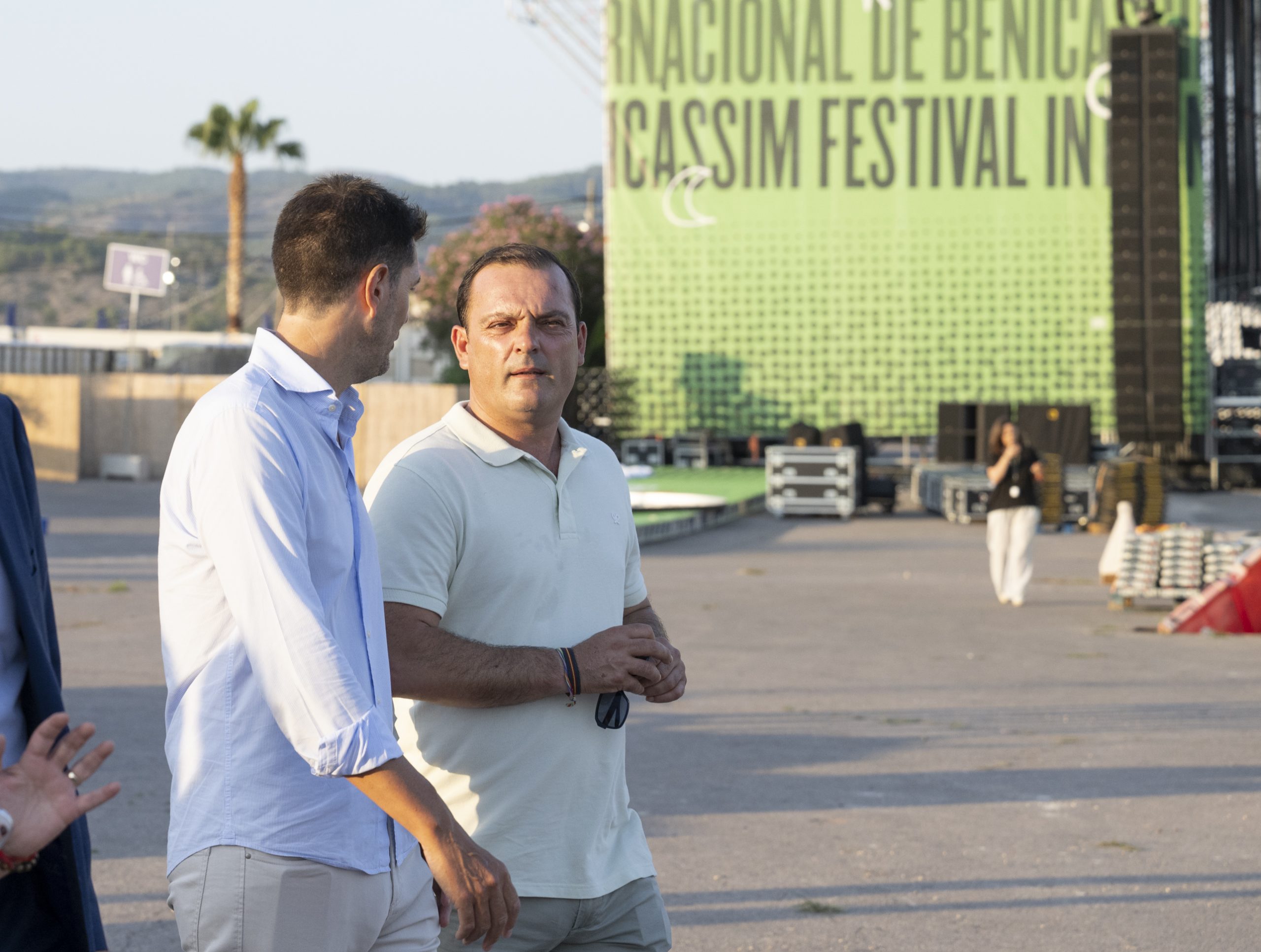 El vicepresidente y responsable del área Turística, Andrés Martínez, ha participado este martes en la visita institucional al recinto de festivales de Benicàssim antes del inicio del FIB este jueves y que se desarrollará hasta el sábado 19 de julio.