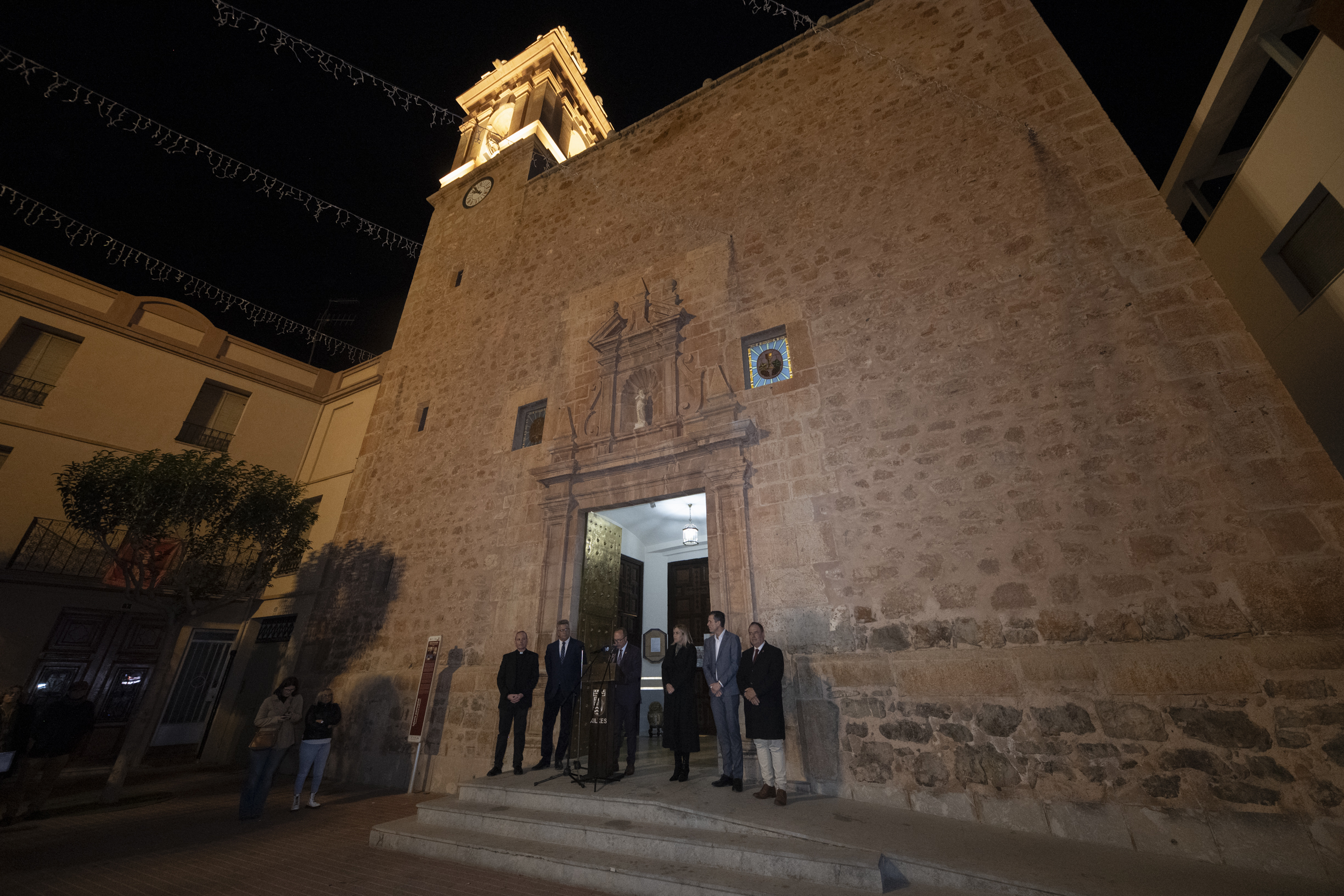 La presidenta de la Diputación Provincial de Castellón, Marta Barrachina, acompañada por el alcalde de Xilxes, Ismael Minguet, ha inaugurado esta tarde la nueva iluminación de la iglesia y del campanario, una actuación que ha permitido mejorar la visibilidad del templo, así como los detalles de este edificio de estilo barroco y neoclásico.