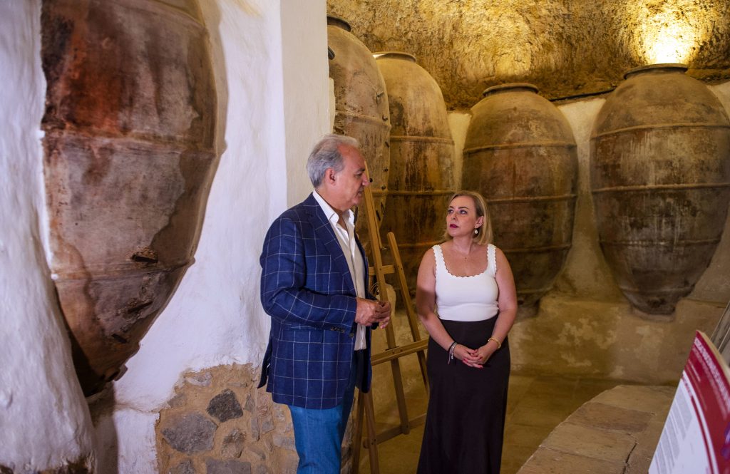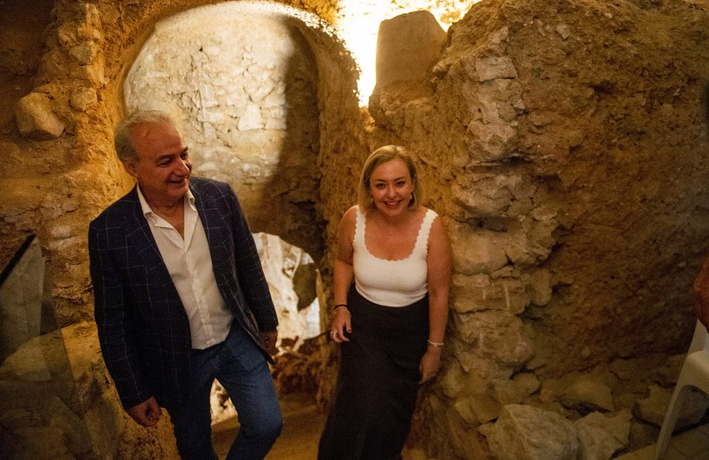 • La vicepresidenta primera de la Diputació de València, Natalia Enguix, junto al alcalde de Utiel, Ricardo Gabaldón, recorren la muralla medieval, las bodegas subterráneas, el refugio antiaéreo del municipio y las instalaciones históricas de los lavaderos
