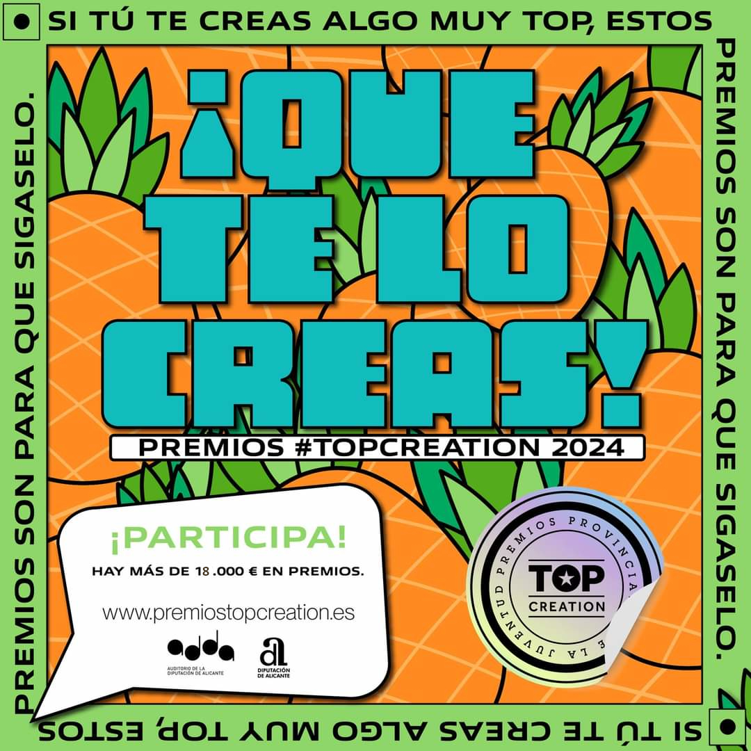 Los premios #TopCreation2024 se estructuran en cinco categorías y varios premios dentro de cada una de ellas. Las distinciones en Iniciativa Empresarial, Social Media, Trabajo Musical -Solista y Grupo-, Relato Breve y Fotografía Digital se desvelarán mañana en una noche en la que se repartirán 18.000 euros en premios.