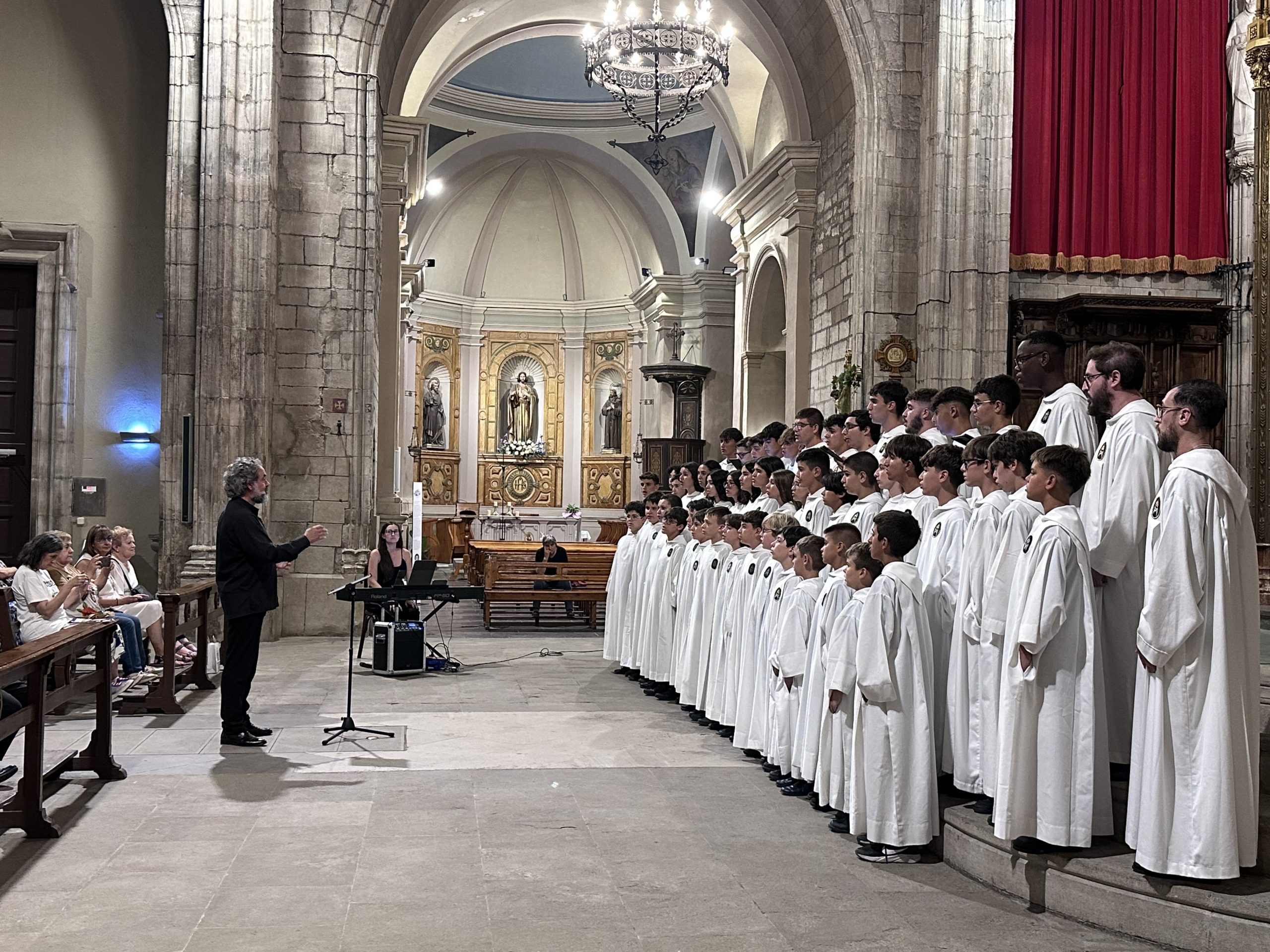 Antes del inicio del concierto, el obispo de Solsona, Mons. Francisco Conesa, ha dirigido unas afectuosas palabras de bienvenida al coro ilicitano, destacando la importancia cultural y espiritual del Misteri d’Elx e invitando a todos los asistentes a descubrir esta joya del patrimonio inmaterial en Elche, durante sus representaciones en agosto.