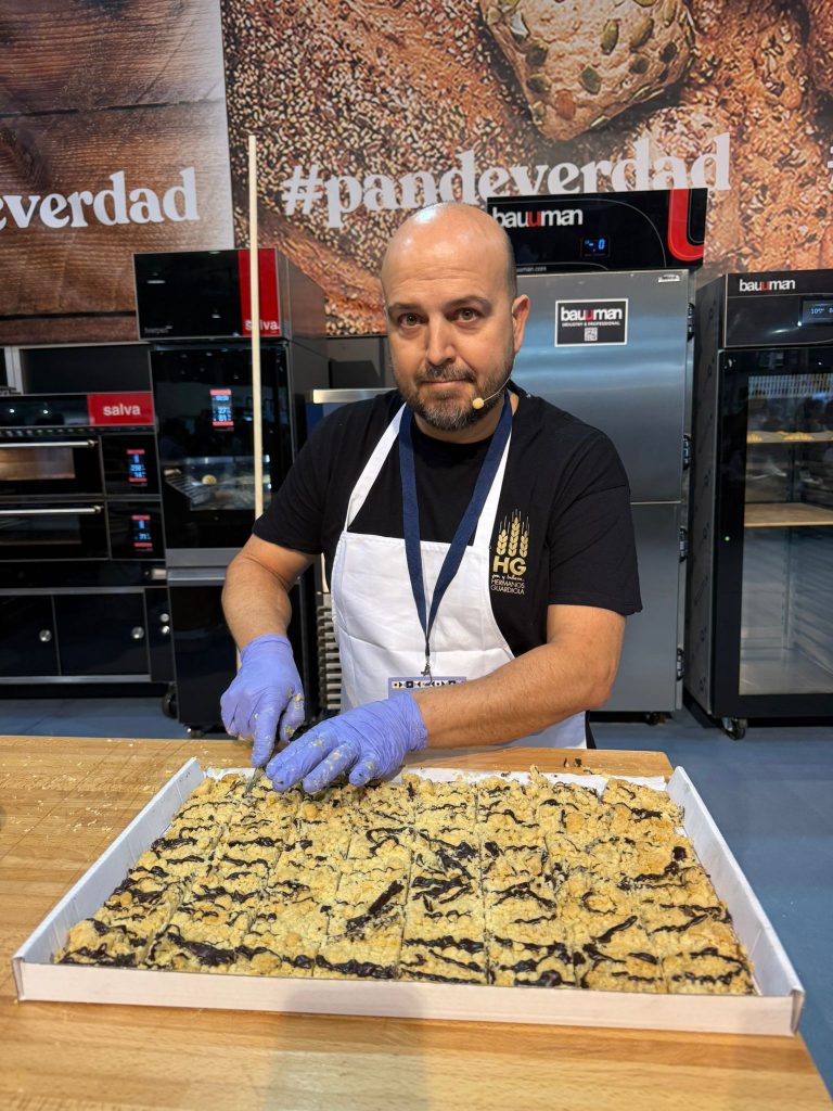 Desde primera hora en el espacio de Pan de verdad ha tenido lugar la Masterclass a cargo de Jorge Guardiola para explicar cómo se cocina la mejor coca de mollitas de Alicante, titulo ganado en el concurso elaborado en el marco de la programación de la capitalidad. El horno tradicional de Hermanos Guardiola, fundado en 1972 y que tiene siete establecimientos en la ciudad de Alicante, realizó una degustación a todos los que se acercaron hasta allí para probar su coca de mollitas tradicional y con chocolate.