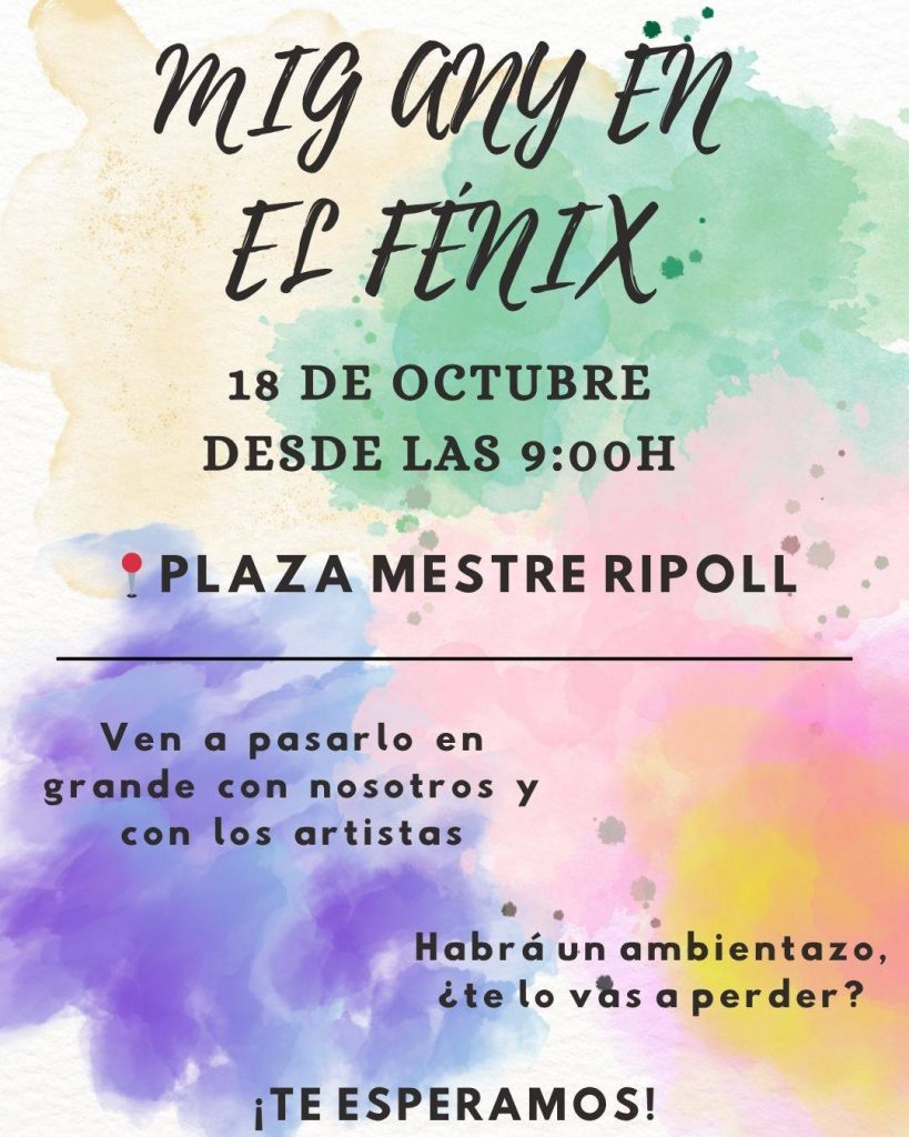 La Falla Blasco Ibáñez – Mestre Ripoll «El Fénix» celebrarà el seu Mig Any el 18 d’octubre a partir de les 10 del matí amb una proposta diferent: transformar la plaça Mestre Ripoll en un taller d’art a l’aire lliure, on setze artistes urbans, il·lustradors i grafiters pintaran en directe els taulers que es convertiran en part del monument faller de 2026.