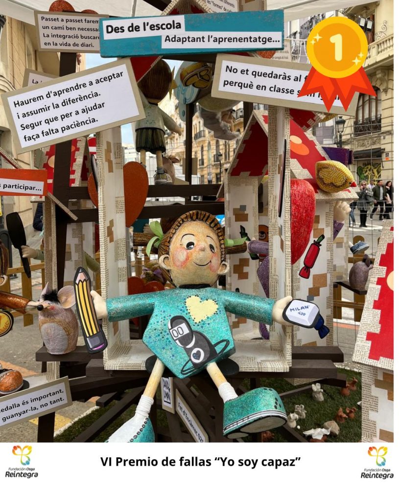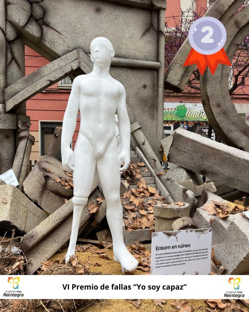 Por su parte el segundo premio ha sido para la Falla Palleter-Erudito Orellana en la que se aboga por un mundo en el que todos tenemos cabida más allá de nuestras circunstancias. Con la intención de premiar y fomentar la visibilidad de la discapacidad en las fallas se inició este concurso que cada semana fallera reconoce el espacio que las fallas brindan a este colectivo.