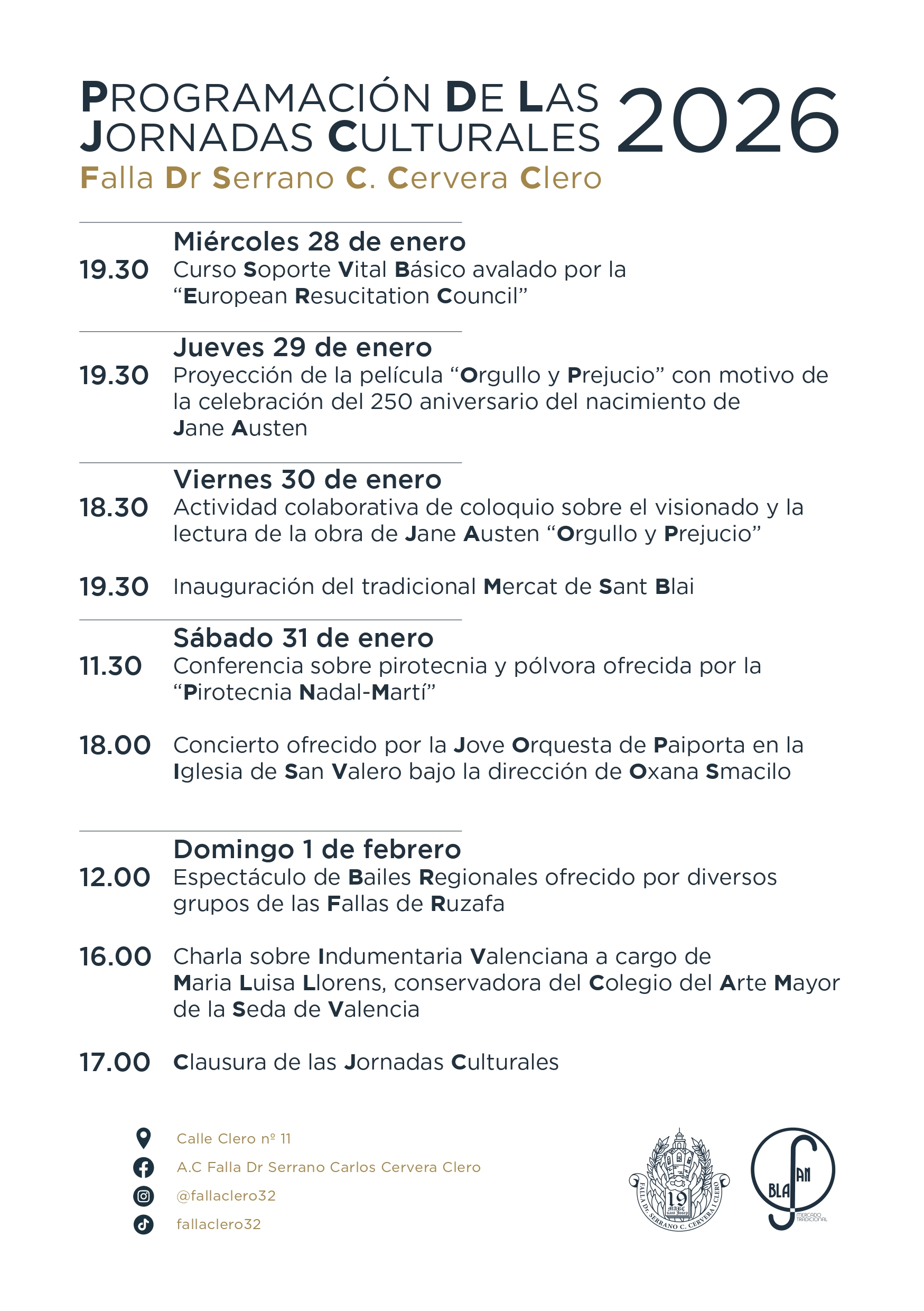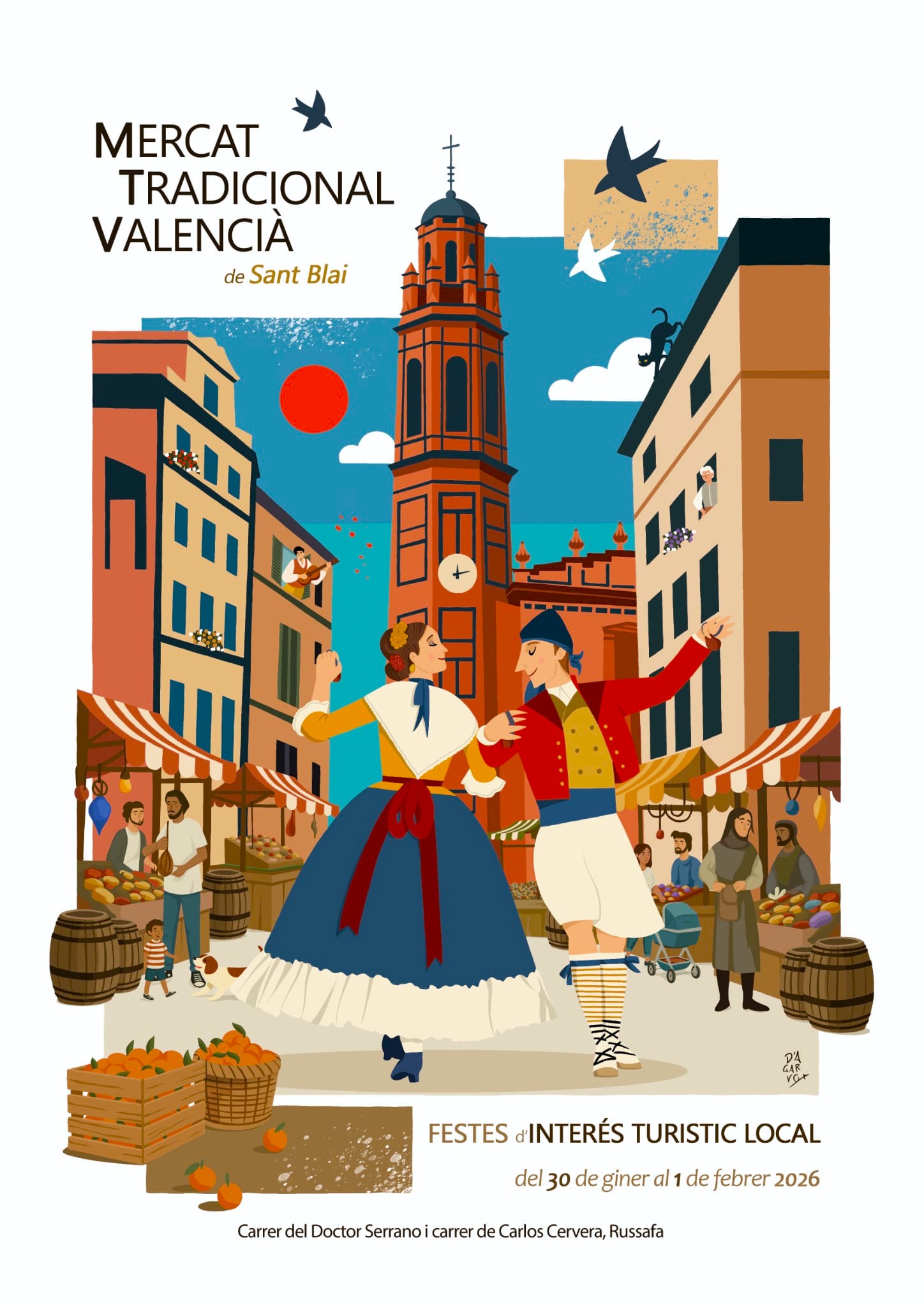 Con la asistencia de la Concejal de Turismo e Internacionalización del Ayuntamiento de Valencia, Paula Llobet Vilarrasa; de la Regina dels CXXXVII Jocs Florals, María García Vallcanera y del President de Lo Rat Penat, Josep Vicent Navarro i Raga, la Falla Doctor Serrano – Carlos Cervera y Clero, ha presentado el cartel anunciador del Mercat de Sant Blai 2026, que se celebrará del 30 de enero al 1 de febrero.