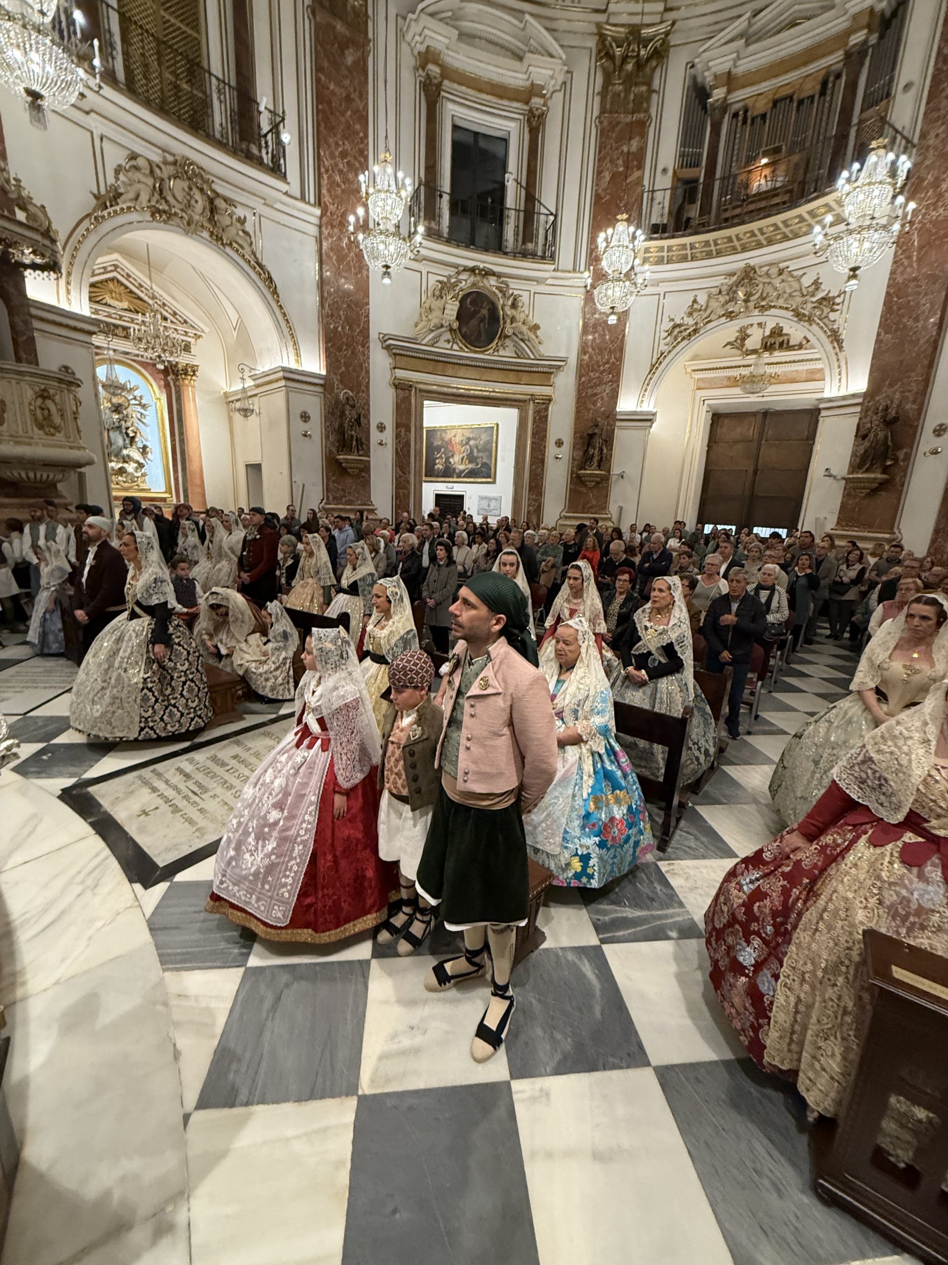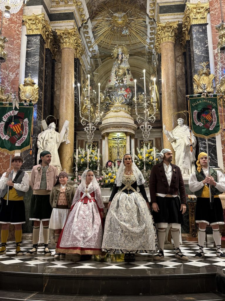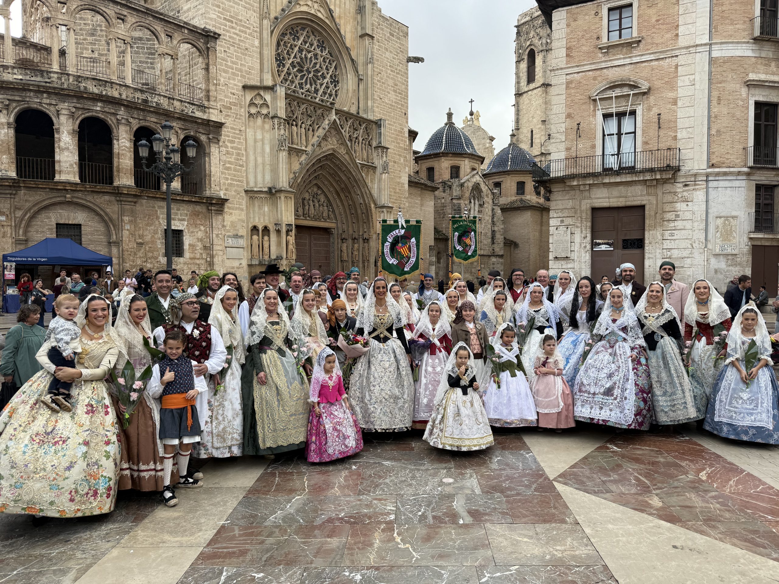 La jornada se inició con un Pasacalle, desde la antigua Casa de los Caramelos hasta la Basílica de la Mare de Deu. A continuación, realizaron una ofrenda floral, en la que participaron miembros de la comisión junto con los representantes de 2025.