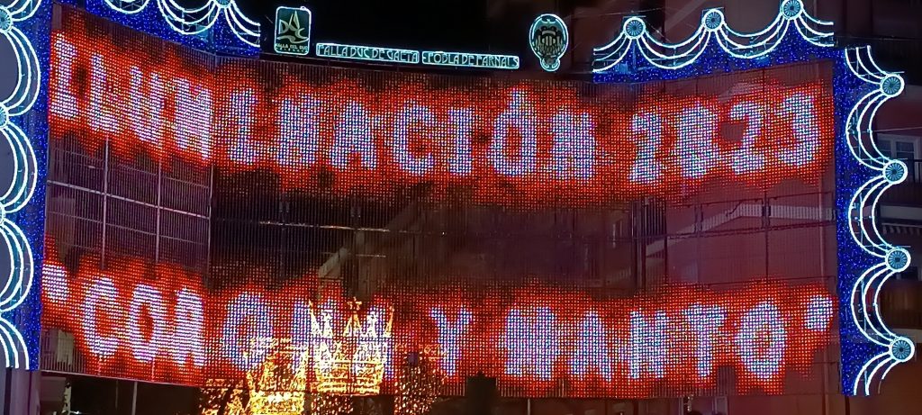 Como colofón una grandiosa pantalla de led que, formando la portada, sirve para dar la bienvenida a los visitantes además de recoger aspectos destacados de nuestra fiesta fallera. En ella van incluidos los carteles conmemorativos de la celebración, los de las fallas de 2023 y los logos de la comisión, además de imágenes de nuestra ciudad, efectos audiovisuales y las firmas patrocinadoras.
