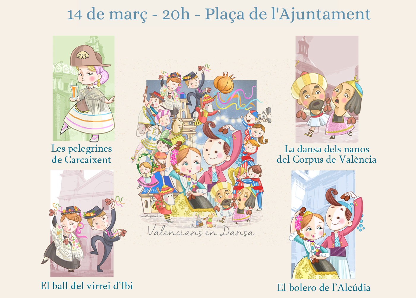 Dimarts 14 de març, a les huit de la vesprada, amb motiu de l’arribada de les peces i ninots de la falla infantil tindrà lloc una festa en la plaça de l’Ajuntament en la qual es podrà gaudir d’alguna de les danses que estan representades en la falla. El regidor de Cultura Festiva, Carlos Galiana, ha animat a participar de la festa i ha convidat “a tota la ciutadania a gaudir de la plantà de la falla infantil i de les danses que hi ha representades en l’obra de Ceballos i Sanabria”.