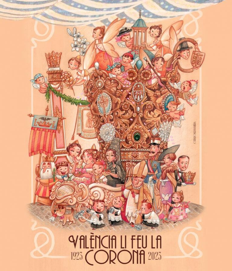 En mayo de 1923 tuvo lugar en nuestra ciudad la Coronación Pontificia de la Virgen de los Desamparados, un acontecimiento histórico que supuso un hito en la vida social y cultural de la Valencia de la época. Por este motivo, en conmemoración del centenario de aquella efeméride, el próximo mes de marzo de 2023 la falla infantil de la plaza de la Reina recordará aquel momento a través de sus protagonistas, de sus actos más singulares y de los elementos más destacados.