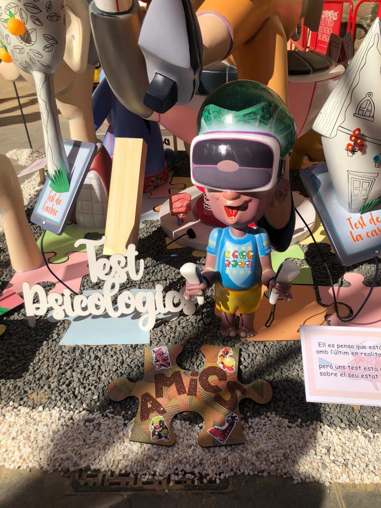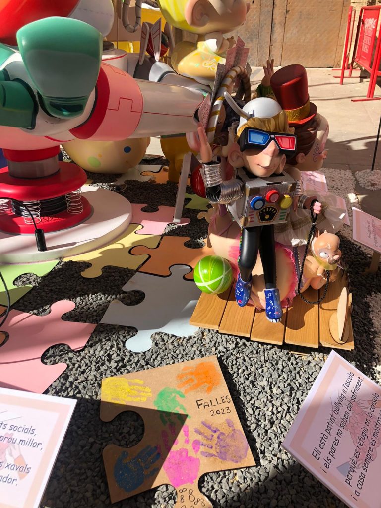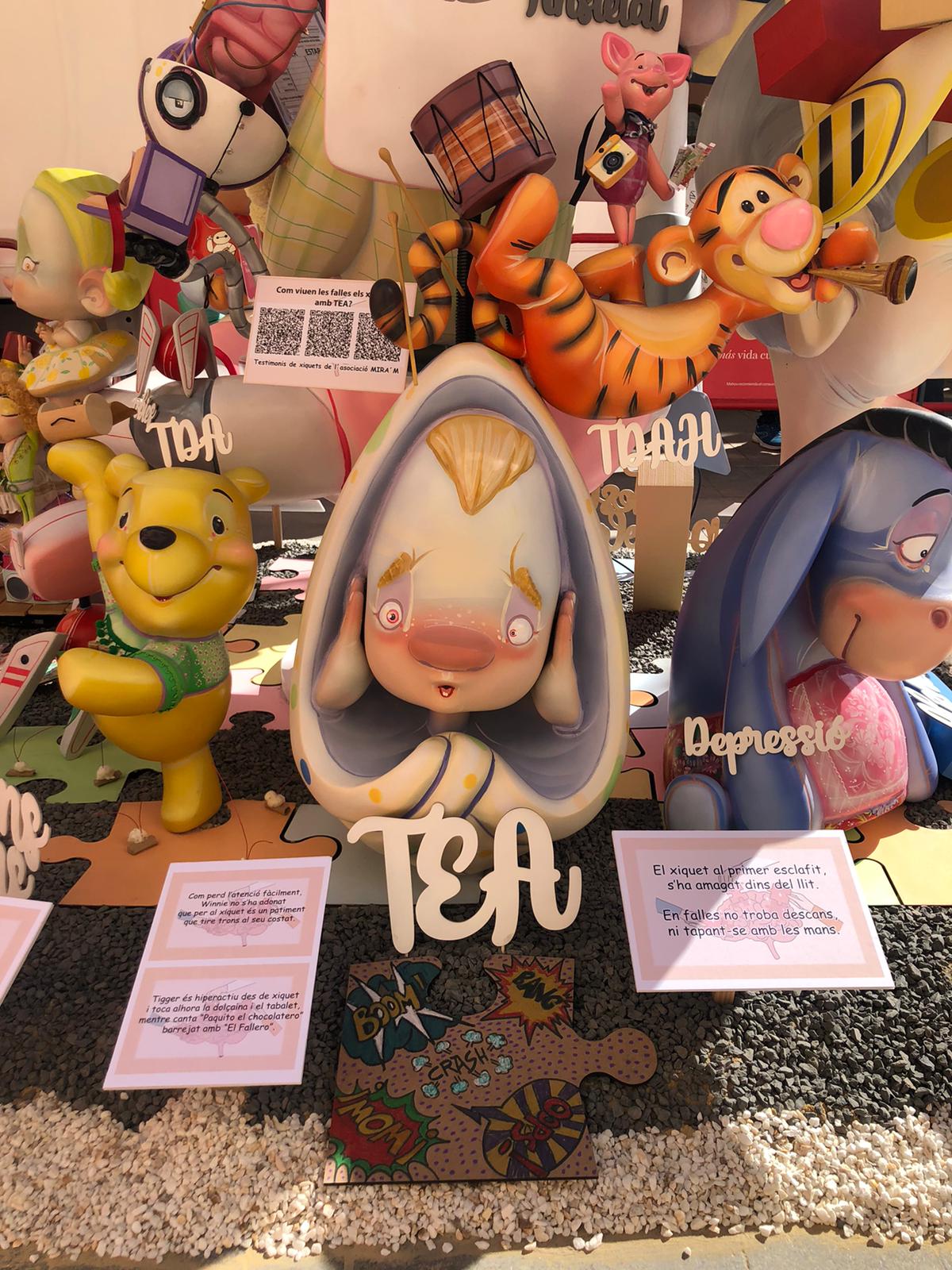 En la falla infantil de la Plaza del Pilar, no solo encontraremos la explicación de la falla mediante pictogramas, también distintos QR que nos conducen a vídeos creados por la asociación donde conocer mejor este transtorno y cómo convivir con él.