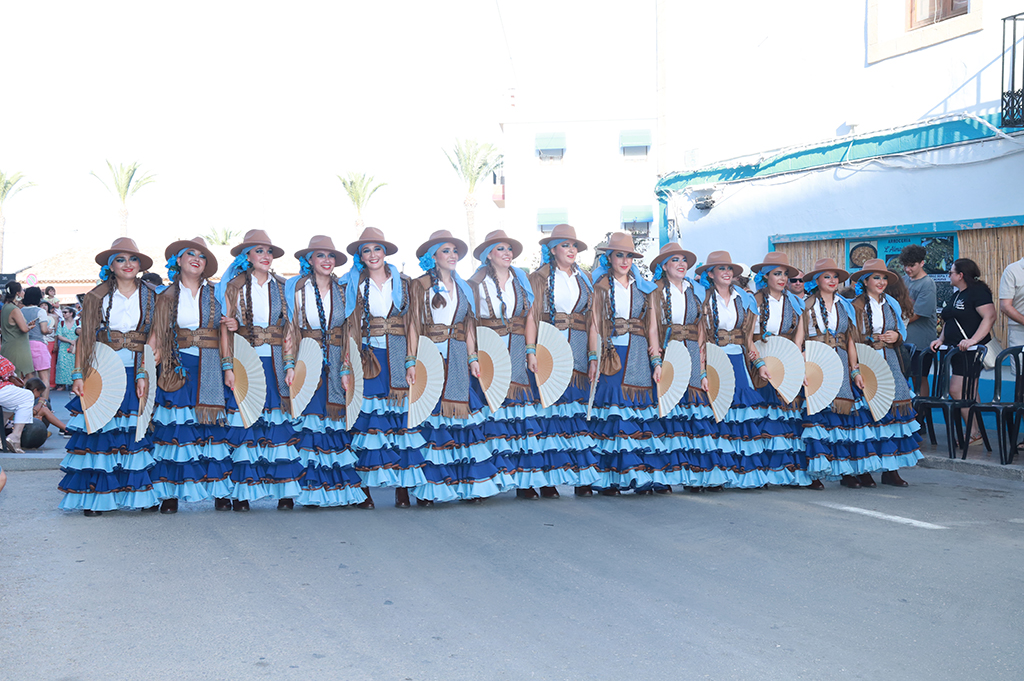 Tras la última Filà mora apareció, a lomos de un bello dromedario, el estandarte de la Filà con su característica calavera de ojos rojos. Enmarcándolo, el ballet de Carmen Villanueva de la Escuela de Baile Endanza de Xàbia. Sus bailarinas recordaron las raíces de la Filà Baharis, fundada por marineros y marineras de Duanes en 1986 y cuyo nombre significa “marineros” en árabe.