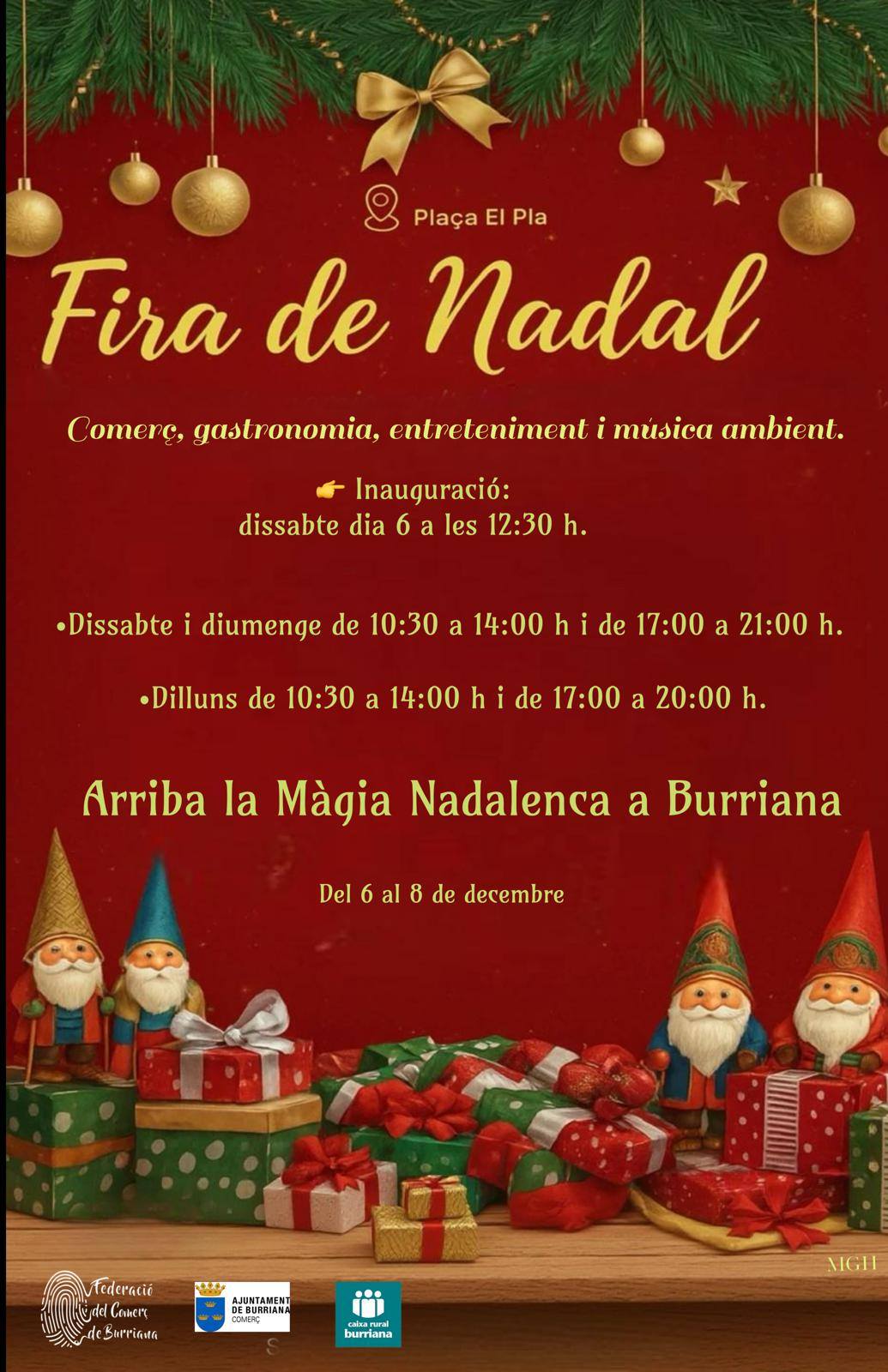 La feria, organizada por la concejalía de Comercio, abrirá del 6 al 8 de diciembre en la Plaça El Pla y ofrecerá horarios especiales y actividades para toda la familia durante el puente festivo.