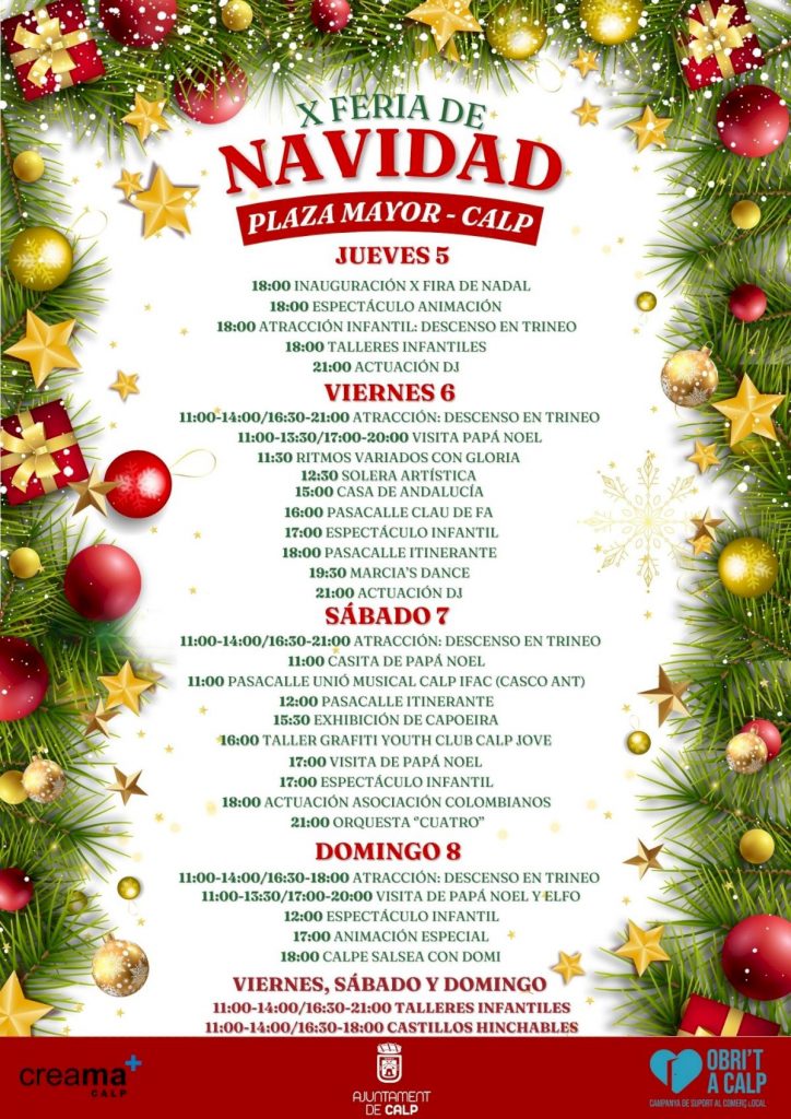 La feria no solo es una oportunidad para apoyar a las empresas y asociaciones de Calpe, sino también un espacio para disfrutar del espíritu navideño con actividades para todos los públicos. Entre las propuestas destacan:
