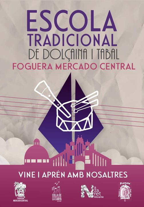 La Foguera Mercado Central junto con la Colla de dolçainers i tabaleters La Canya, el Colegio Nazaret y la Federación de Hogueras ponen en marcha la primera “Escola tradicional de dolçaina i tabal” en Alicante.