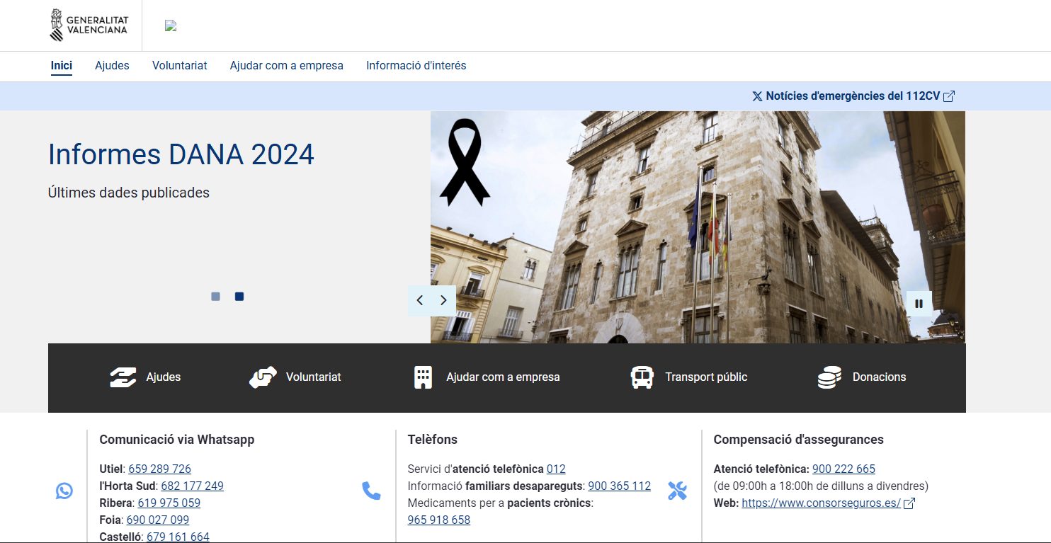 La Generalitat ha actualizado la página web som solidaritat para ofrecer de manera centralizada toda la información de servicio público dirigida a las personas afectadas por la dana.