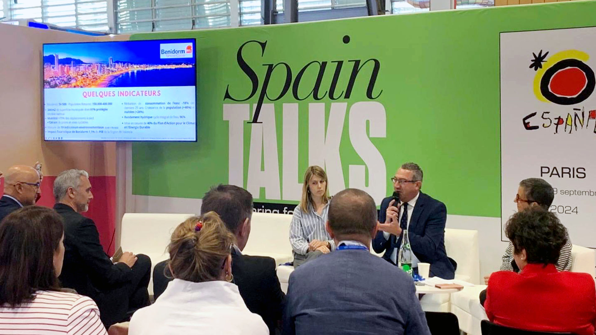 La gestión del ciclo integral del agua en Benidorm ha sido protagonista de un evento organizado por Turespaña en el marco de la IFTM-Top Resa de París, la principal feria para profesionales del turismo que se celebra en Francia. El alcalde de la ciudad, Toni Pérez, participó en el foro ‘Spain Talks’ la tarde de este jueves para exponer las medidas que ha adoptado la ciudad dentro de su modelo DTI para ser un destino más accesible y más sostenible, con especial énfasis en la gestión hídrica, durante una amplia agenda de trabajo en este salón parisino en la que también ha participado la gerente de la Fundación de Turismo Visit Benidorm, Leire Bilbao.