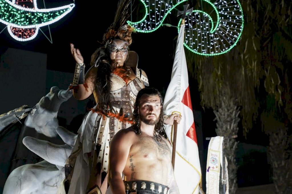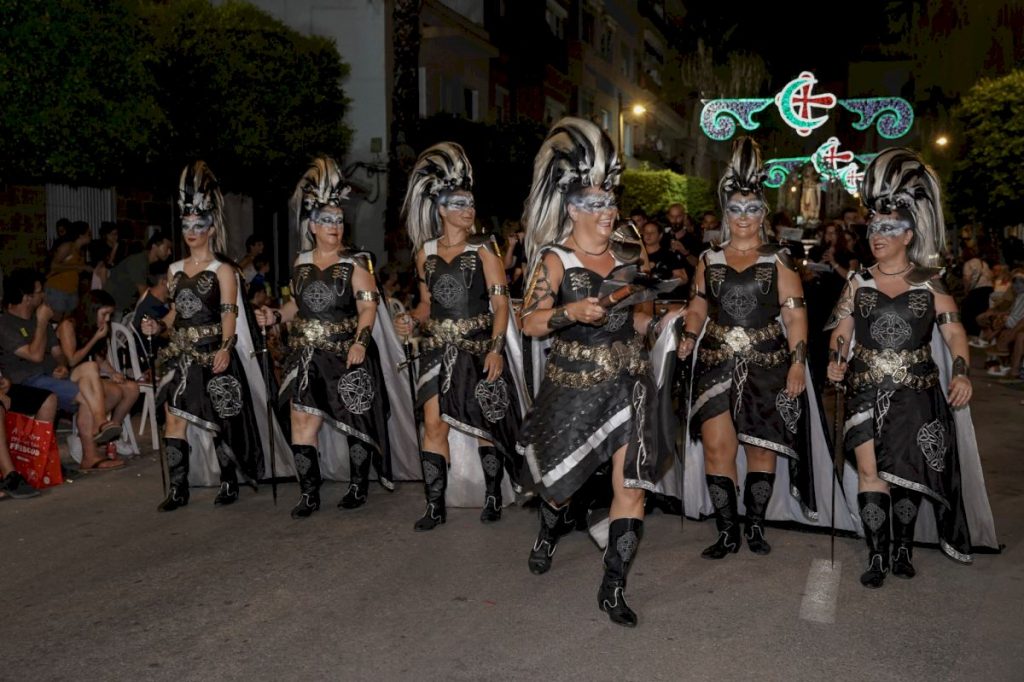 De esta manera, la comparsa Els Vilaragut, creada en 2003, lideró el bando cristiano también con atractivos vestidos y marchas solemnes. Pascual Daroqui como capitán y Carmen Arias como abanderada marcharon al frente y completaron la comitiva durante esa noche el resto de filaes de las comparsas Guerreras de Tadmir, Guardianas de Sibila, Cavallers Templaris, Montañesas de Irta, Jaume I, Artal de Luna, Corsaris, Almogàvers, Zíngara y Arqueras.