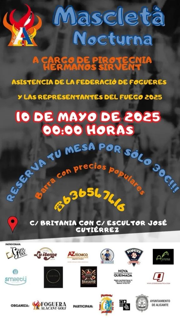 Esta emocionante iniciativa cuenta con la valiosa colaboración de un amplio abanico de patrocinadores, cuyo apoyo es fundamental para llevar a cabo este espectáculo pirotécnico único. El evento tendrá el honor de contar con la participación de la Federació de Fogueres así como la presencia de les Belleses del Foc i Dames d´Honor 2025.