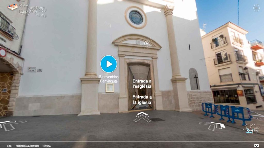 El acceso es muy simple. Desde el navegador web, un móvil, tableta, ordenador o gafas de realidad virtual, el usuario accede al recorrido y usa el giroscopio de su dispositivo (si dispone de él) o los clásicos menús. El itinerario se ha dividido en dos partes, el exterior de la iglesia con la plaza de Sant Jaume, Castelar y hasta el Castell. “Aquí –precisa Pellicer- podemos disfrutar de algunos de los puntos más emblemáticos de Benidorm, visitados diariamente por vecinos y turistas”.