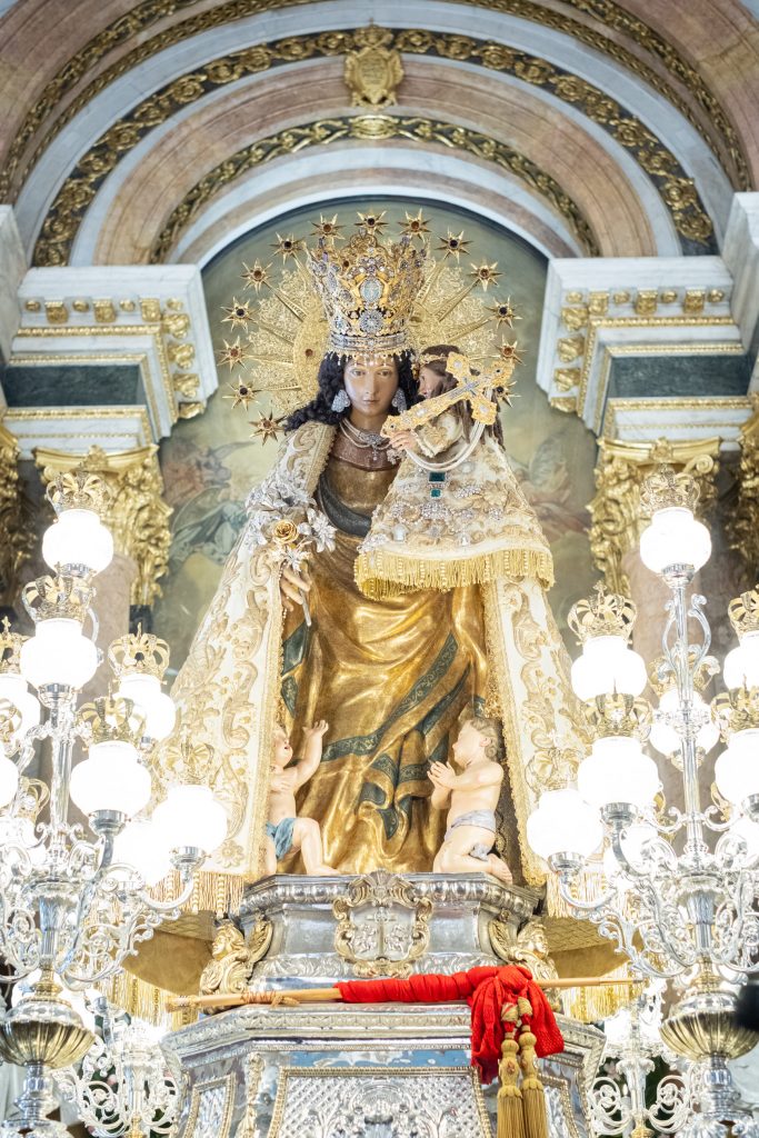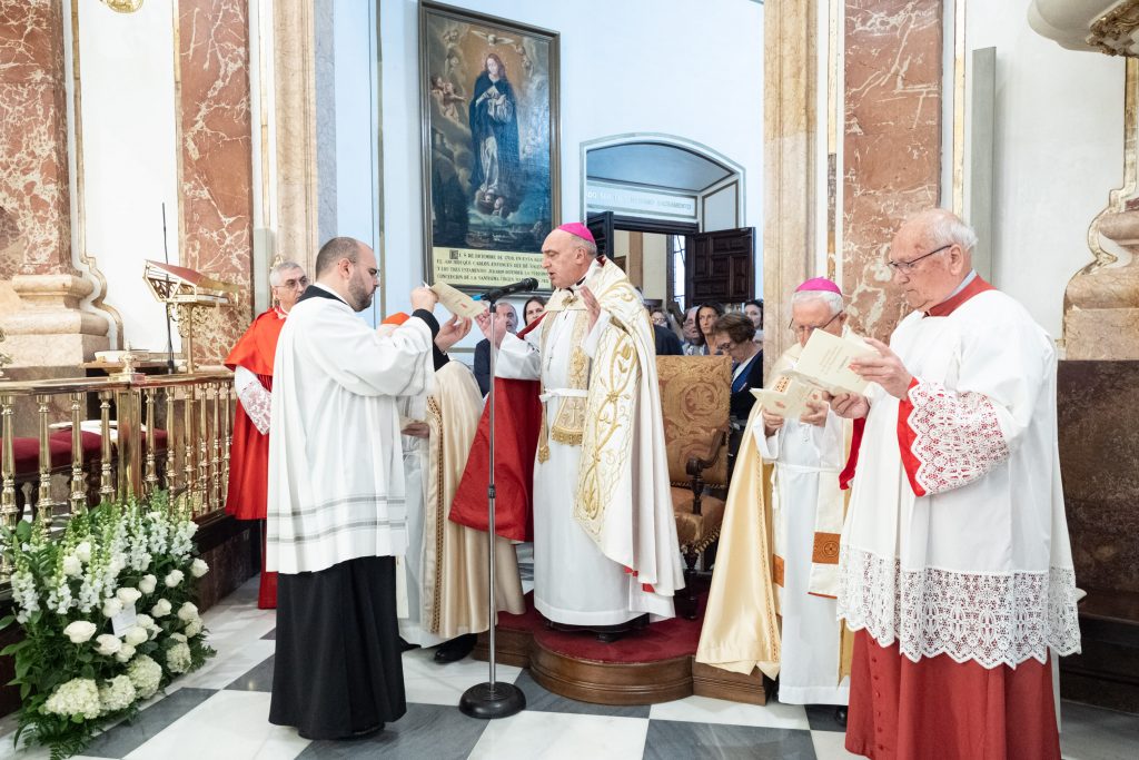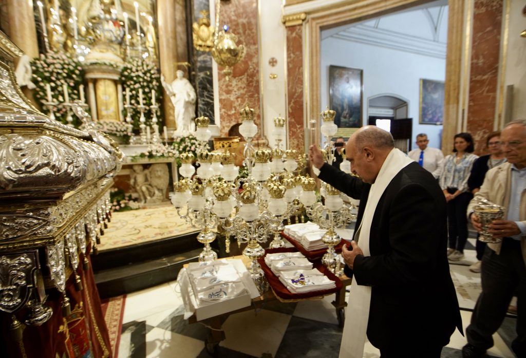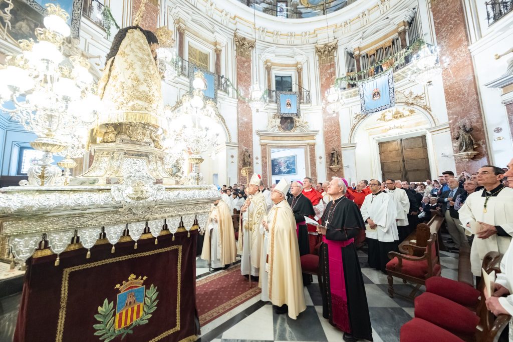 Entre los testigos del ceremonial estaba el arzobispo de Valencia, monseñor Enrique Benavent, que ha seguido cada momento con emoción y respeto, al igual que el resto de los presentes. Previamente, ha bendecido las andas de plata, restauradas recientemente, sobre las que descansa la imagen original.