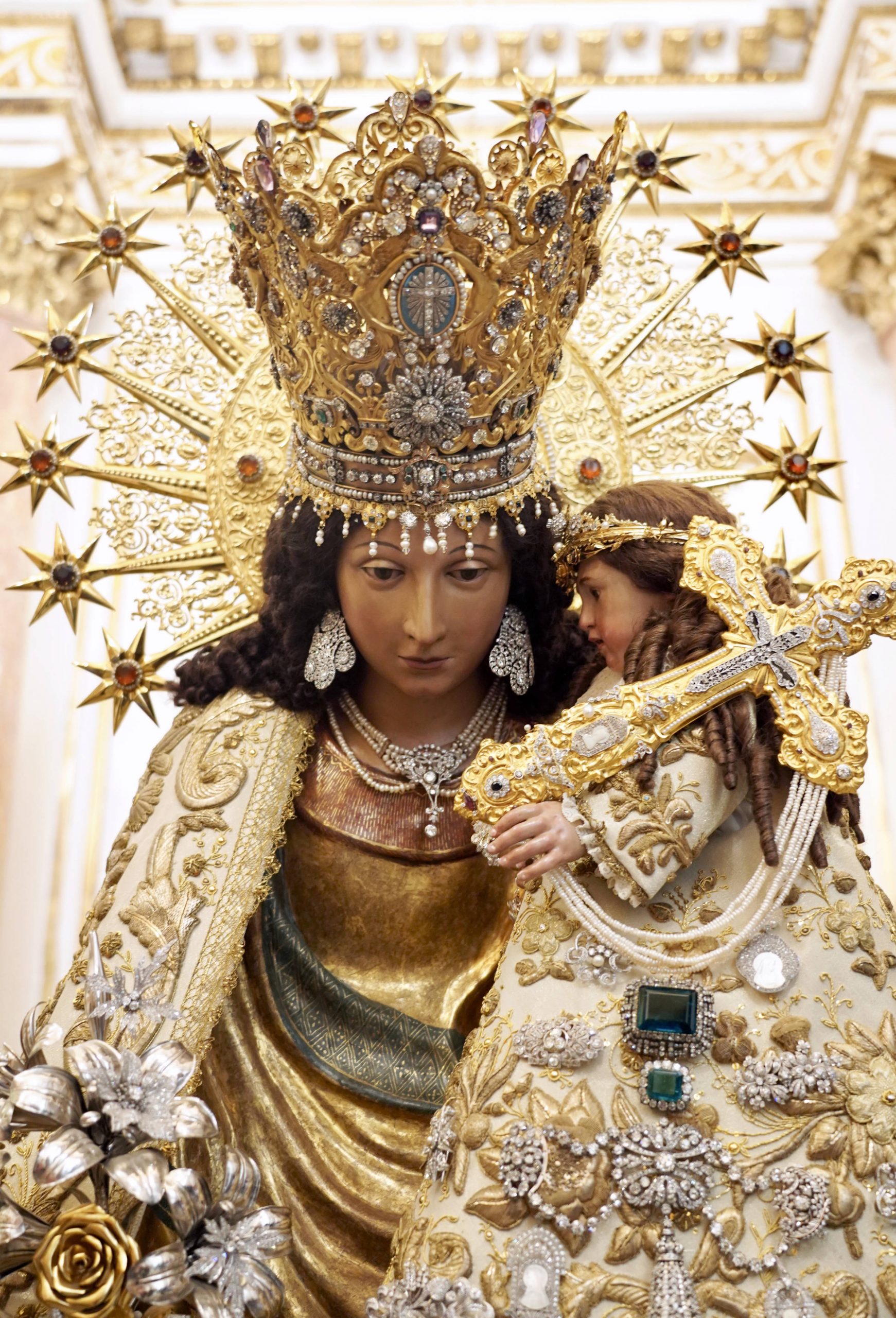 La talla original de la Mare de Déu lleva en su brazo izquierdo la imagen del Niño Jesús conocida popularmente como el “Bobet”, obra del escultor valenciano Ignacio Vergara (1715-1776), expuesta desde hace años en el Museo Mariano (MUMA), con el que fue fue coronada la Patrona en el Puente del Real hace hoy cien años.