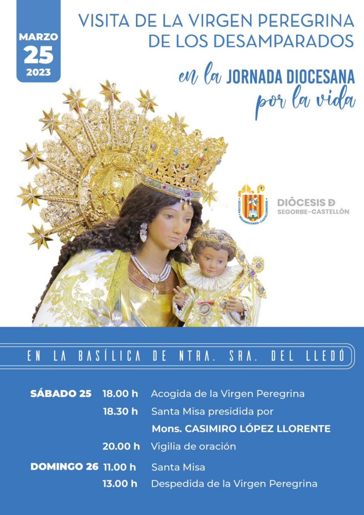 La acogida de la “Peregrina” tendrá lugar el sábado, a las 18 horas, en la Basílica de Nuestra Señora del Lledó donde a las 18:30 horas presidirá una misa el obispo de Segorbe-Castellón, monseñor Casimiro López. La jornada del sábado finalizará con una vigilia de oración a las 20 horas.