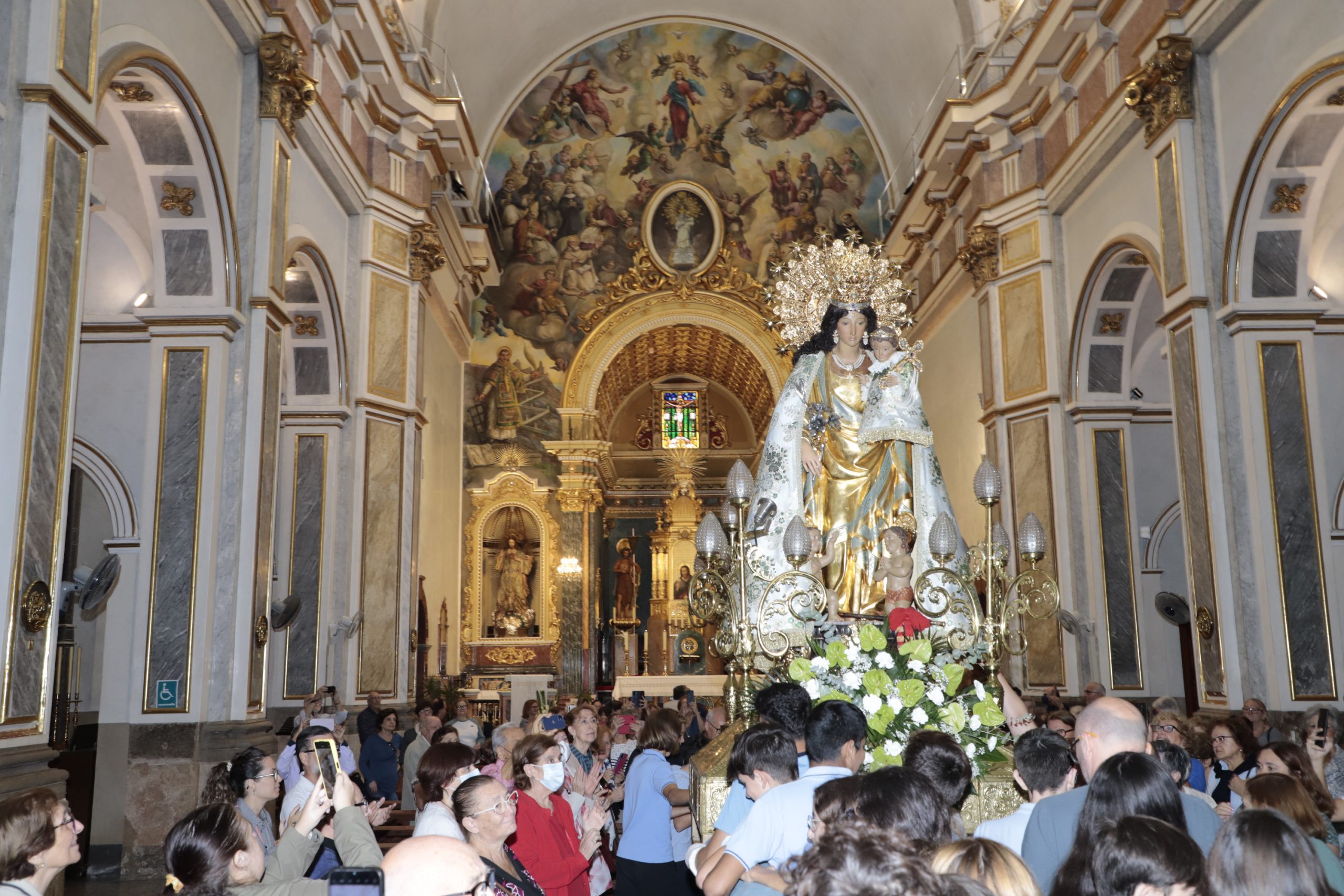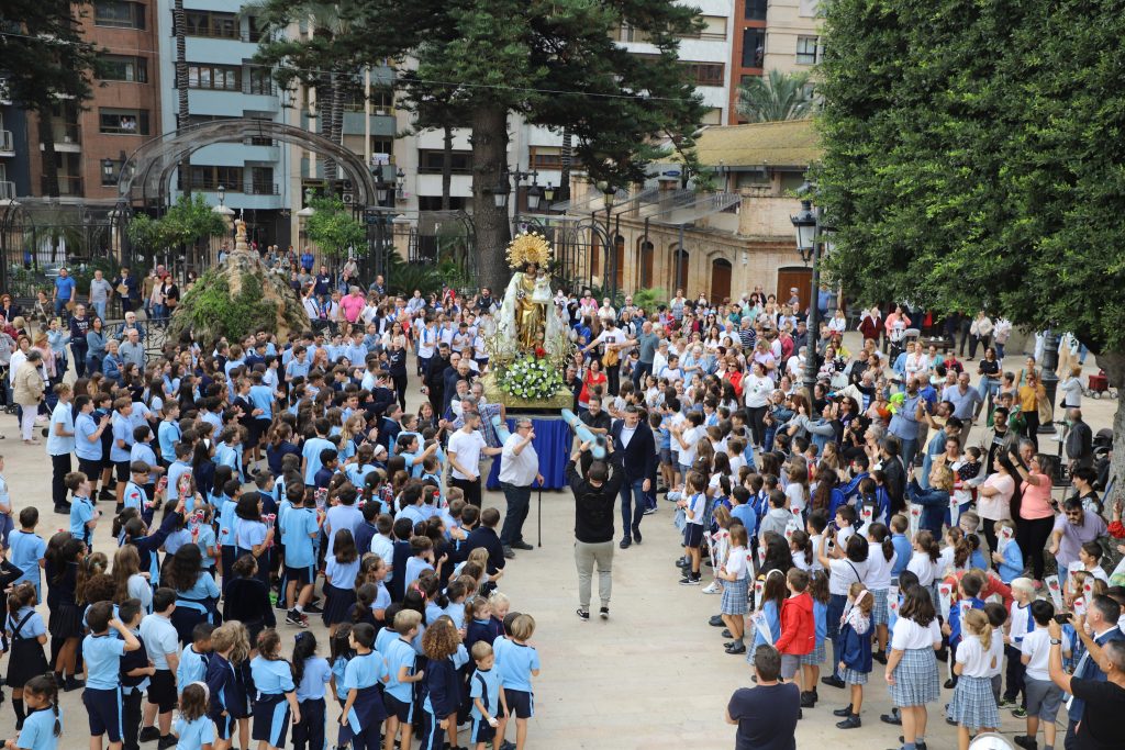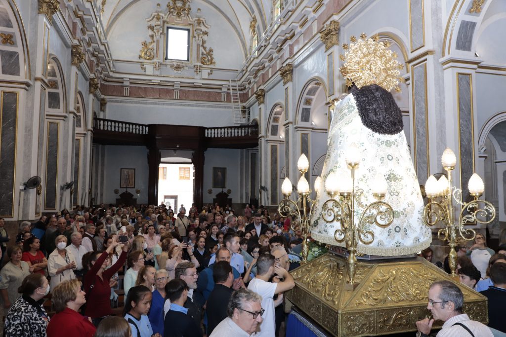 La imagen llegó ayer viernes, por la mañana, a la Plaza del Mercado de Cullera, donde fue recibida y tuvo lugar un encuentro con los niños. Posteriormente, fue trasladada a los Santos Juanes, templo que permaneció abierto hasta la noche para venerar la imagen de la patrona.
