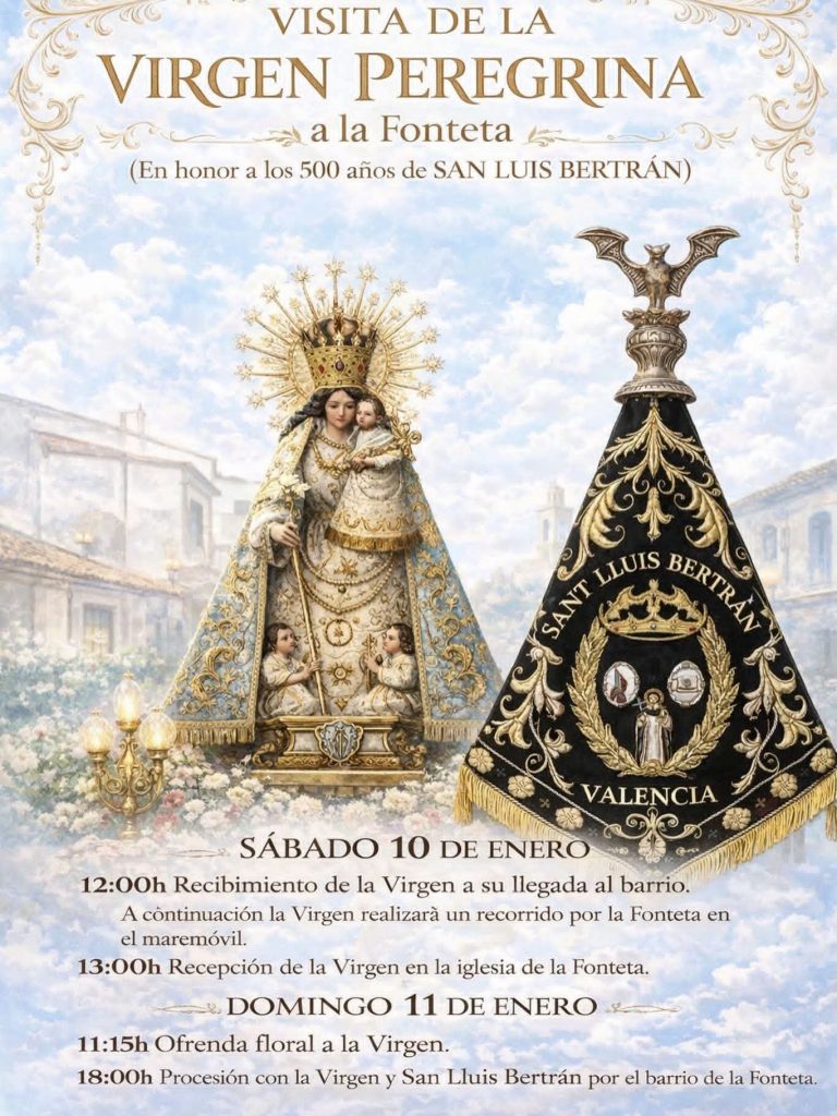 La imagen peregrina de la Virgen de los Desamparados realizará mañana, sábado, y durante el domingo, una visita al barrio valenciano de la Fonteta de San Luis, con motivo del 500 aniversario del nacimiento de San Luis Bertrán, santo valenciano, dominico y gran predicador.