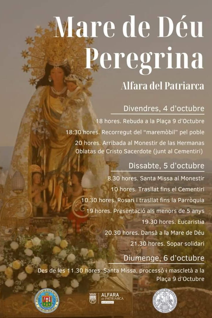 El sábado, 5 de octubre, tras la misa a las 8:30 horas en el monasterio, la imagen de la Mare de Déu será trasladada a las 10 horas al Cementerio. Posteriormente, se rezará el Rosario y tendrá lugar el traslado a la parroquia.