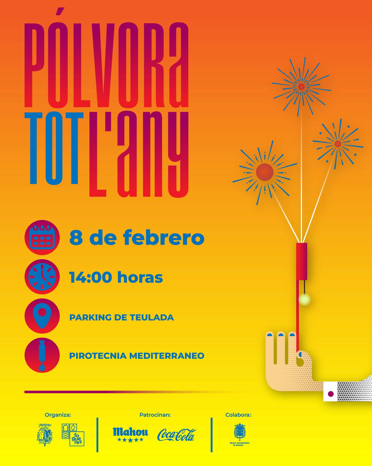 - 8 de febrero: Mascletà a las 14 horas en Parking de Teulada. Pirotecnia Mediterráneo