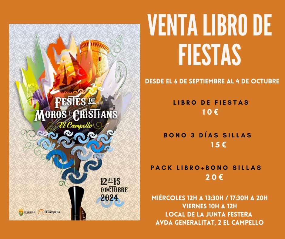 La Junta Festera de Moros y Cristianos que preside Marga Sebastiá ya está a pleno rendimiento. El próximo viernes, 6 de septiembre (y hasta el 4 de octubre), los interesados podrán adquirir por 10 euros el tradicional llibret de festes en los locales sitos en el número 2 de la Avenida de la Generalitat, donde también se venden las sillas para asistir a los tres desfiles programados, al precio de 15 euros. Se ofrece un pack de libro más bono de sillas por 20 euros.
