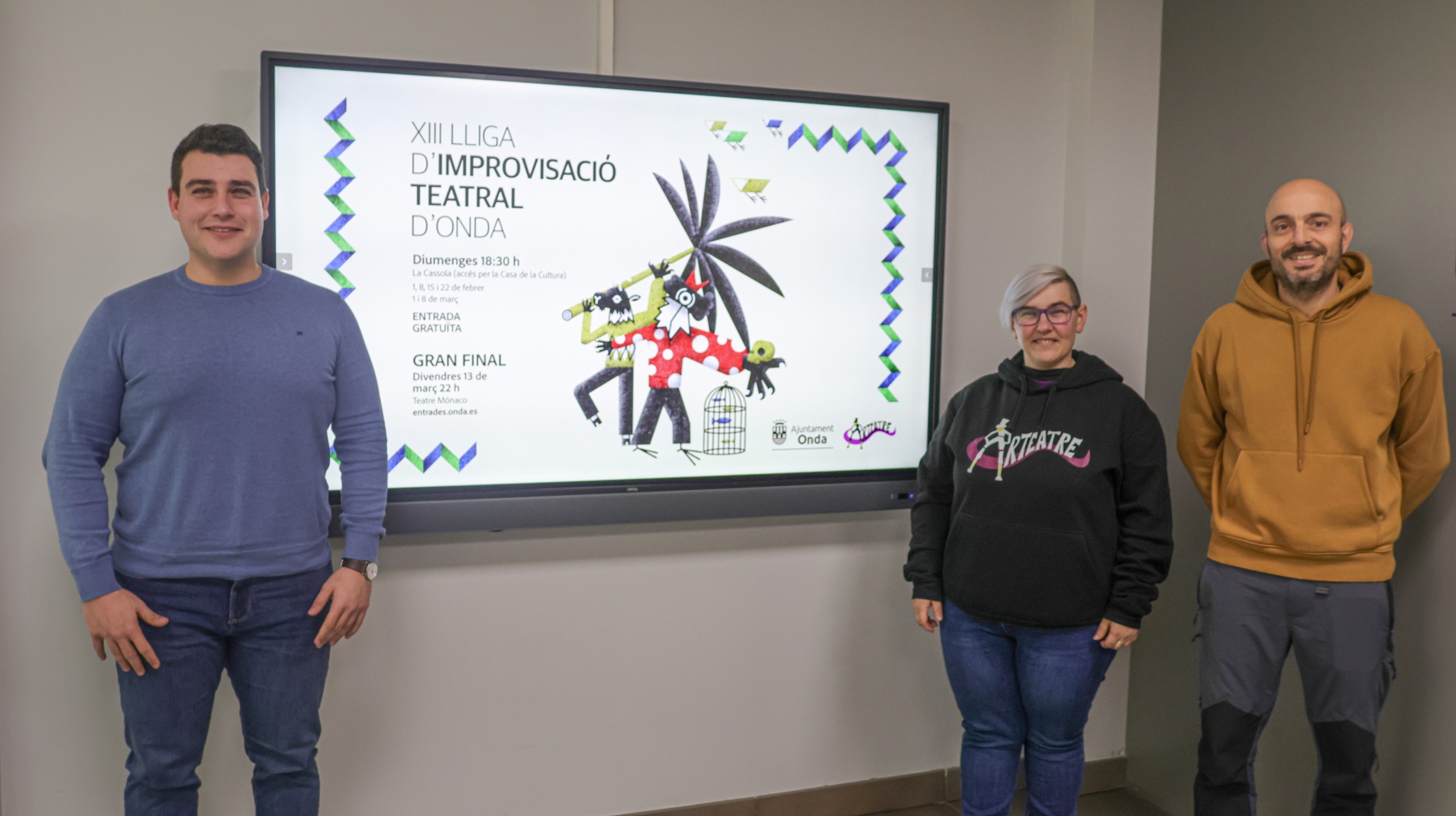 La XIII Lliga d’Improvisació Teatral d’Onda culminará con una gran final que se celebrará el viernes 13 de marzo, a las 22.00 horas, en el Teatre Mónaco. Para esta última cita, las entradas estarán disponibles a través de la plataforma entrades.onda.es, a partir del lunes 26 de enero, a las 12.00 h.