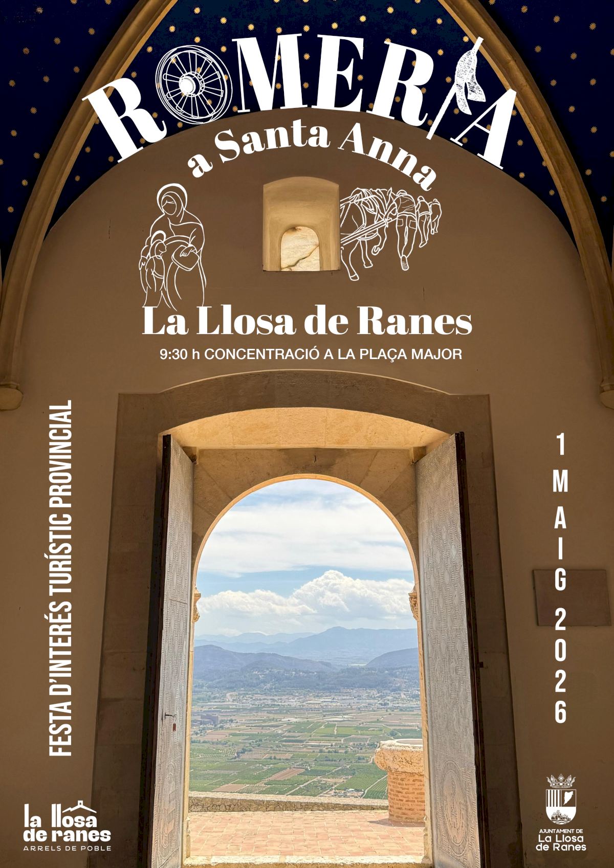 El dia més esperat és l’1 de maig, quan se celebrarà la Romeria a Santa Anna. La jornada festiva començarà a les 9 hores amb la concentració dels carruatges, cavalls i animals de muntura en el Magatzem municipal, en el polígon el Salt.