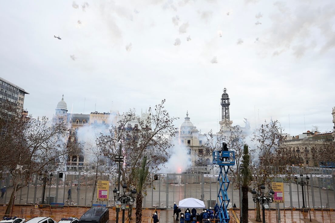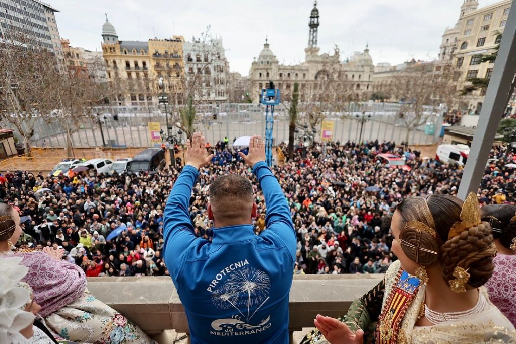 La mascletà titulada «Inefable», pero Toni García, propietario de la empresa de Vilamarxant, había preparado un espectáculo diferente, ya que las condiciones climatológicas ha tenido que adaptarlo.