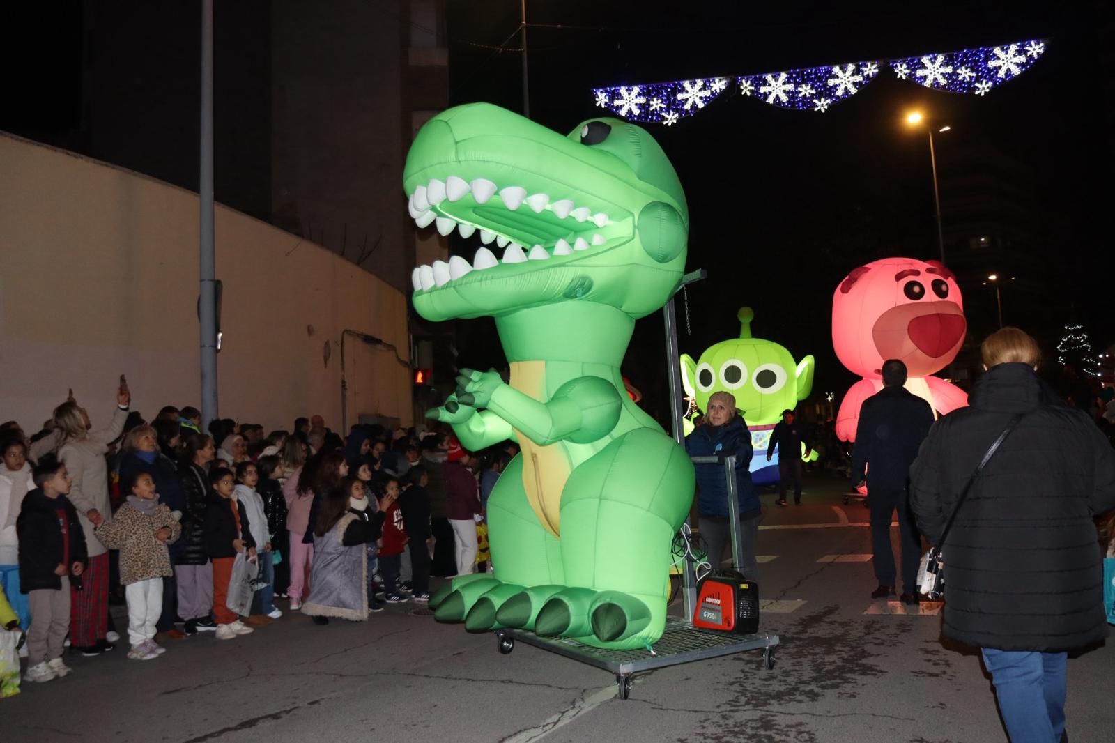 Una Cabalgata de Reyes que ha contado con la participaron más de 315 figurantes, entre grupos de animación a pie y participantes en carrozas, que animaron el recorrido. El desfile contó con un total de nueve carrozas, entre las que destacaron las más esperadas: las de Sus Majestades los Reyes Magos, Melchor, Gaspar y Baltasar y desde las que se lanzaron 5.000 kilos de caramelos parte de ellos sin gluten para las personas celiacas atendiendo a la reunión mantenida con su asociación.