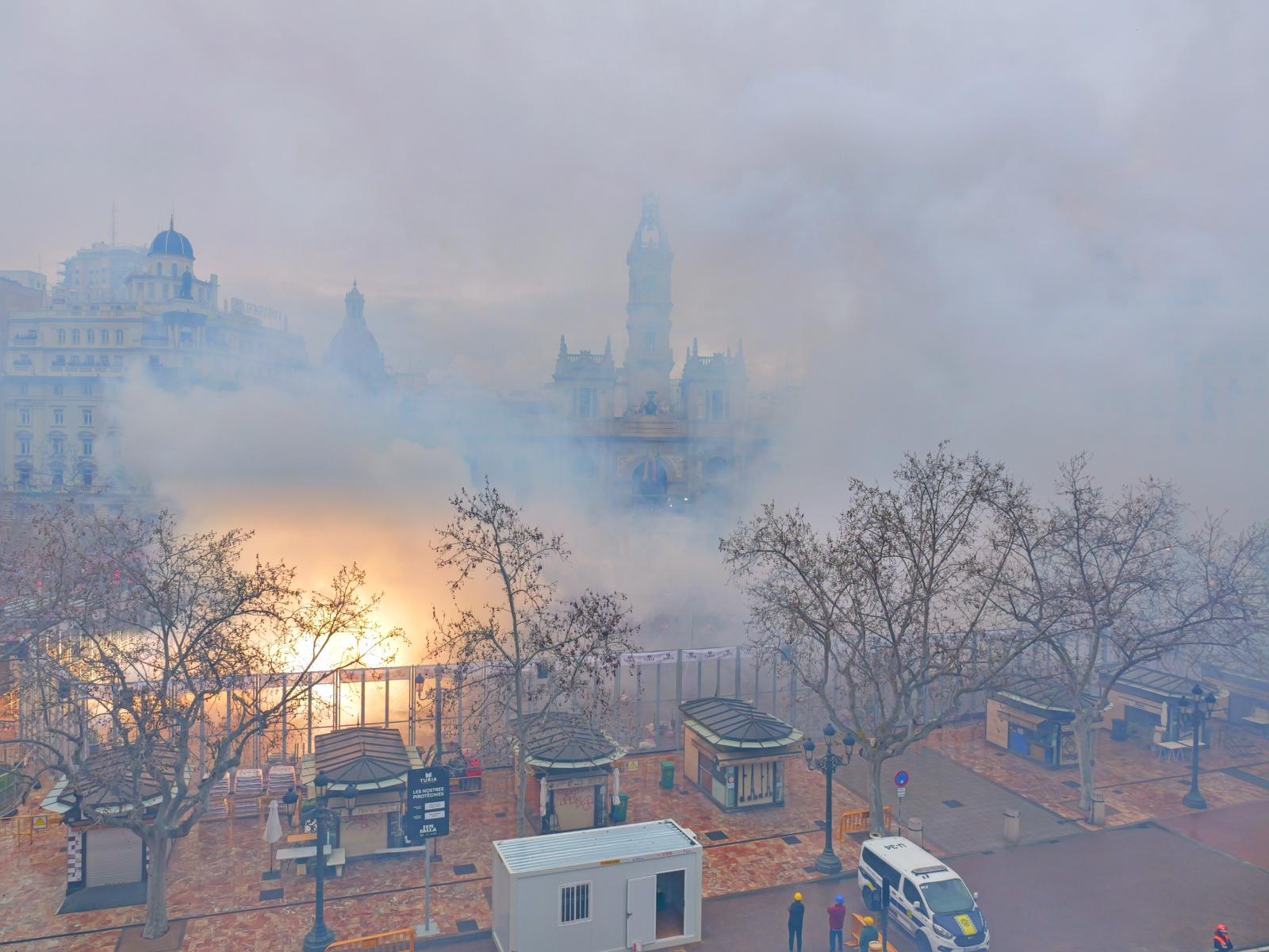La próxima cita con la pólvora en la Plaza del Ayuntamiento será esta medianoche con el espectáculo nocturno ‘La magia del color’ de Pirotecnia Tomás.