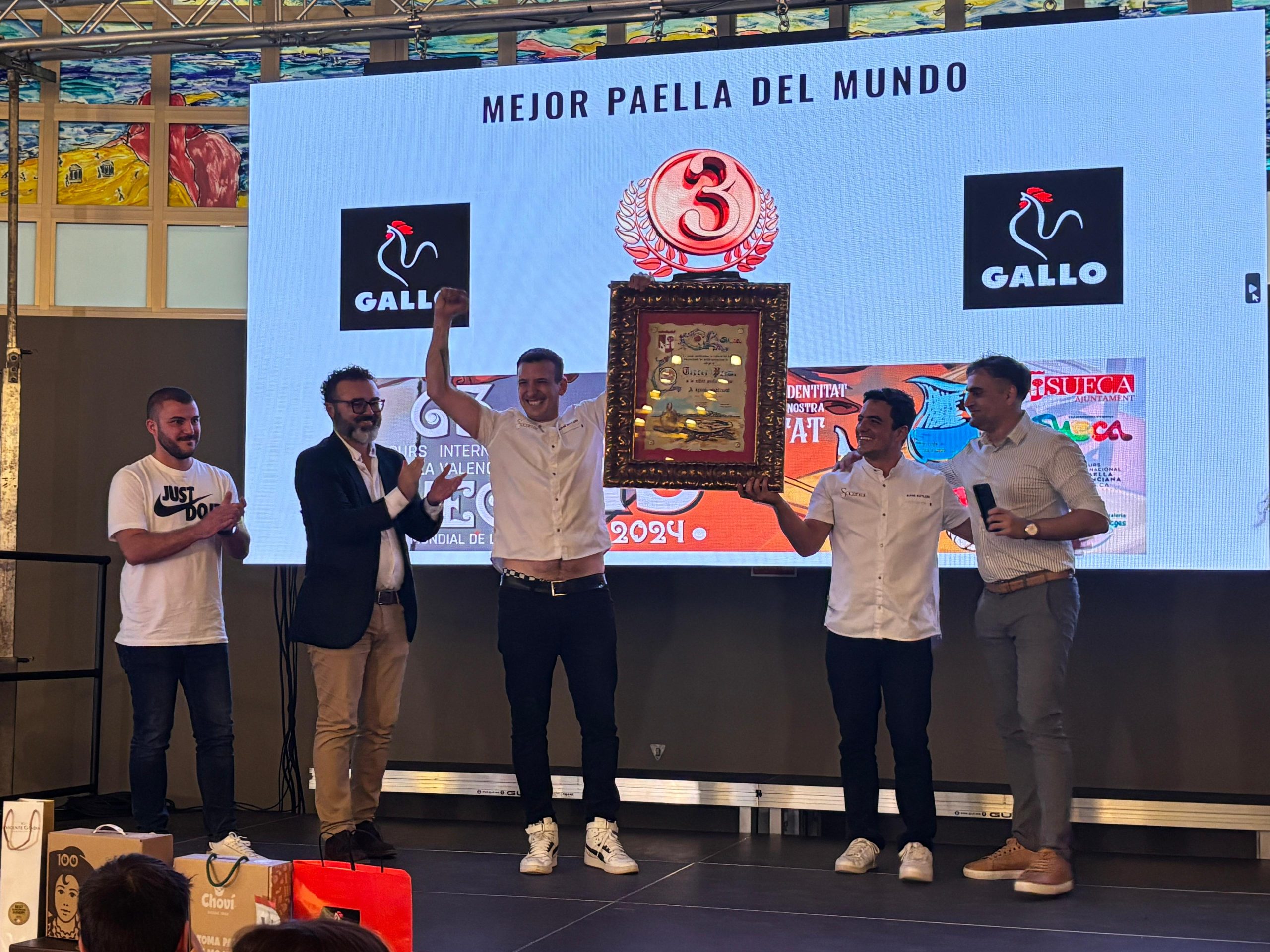 Los ganadores, el chef Paco Rodríguez, y su ayudante, Rafael Climent, han recibido el premio de manos del alcalde de Sueca, Julián Sáez, y han mostrado su profunda emoción tras conocer la decisión del jurado, que ha estado formado en esta ocasión por Fernando Sanchis y Óscar Parrell, ganadores del Concurs de Paelles Amateur de Sueca 2024; Juan José San Bartolomé Grau, ganador de la 62 edición del Concurs Internacional Paella Valenciana de Sueca; Mohamed Houd Chaibani, representante del Gremio de Hostelería de Sueca y Playas; Avelino Alfaro Serrano, presidente de la Associació Cultural i Gastronòmica Fideuà de Gandia; Tono Franco Martínez, director gerente de Visit València; Maje Martínez Cortina, directora de contenidos de Gastrònoma; Silvia Soria Cases, periodista y locutora de radio especializada en programas de gastronomía; y Santos Ruiz Álvarez, gerente de la Denominación de Origen y crítico gastronómico, quien ha actuado como presidente del jurado. Como notario ha ejercido Jaime Cuesta López.