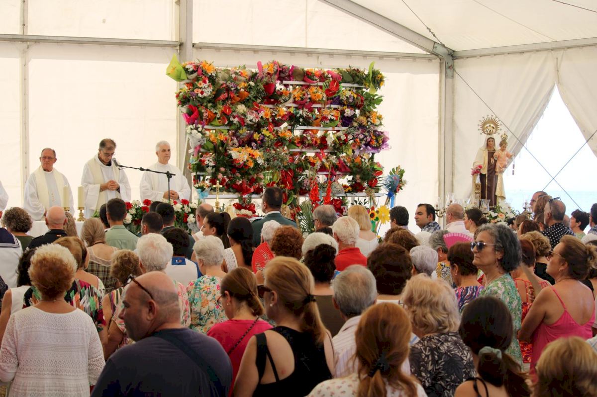 El intenso calor (aminado solo en parte por la brisa marina), no ha sido óbice para que la Misa de Campaña programada para la 11:00 horas de hoy para conmemorar el centenario de las fiestas de la Virgen del Carmen haya resultado multitudinaria.