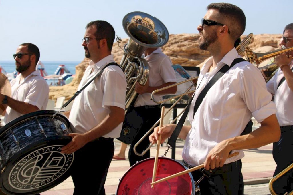 Antes del oficio religioso se han sucedido hasta dos pasacalles con la participación de la Sociedad Musical La Nova, a los que no han faltado las autoridades locales (encabezadas por el alcalde Juanjo Berenguer, acompañado en esta ocasión por la concejala de fiestas y Tradiciones, Marisa Navarro, y ediles de PP, PSPV-PSOE y Vox), integrantes de la Comisión de Fiestas Estrella de los Mares, representantes de la Cofradía de Pescadores y de diversos colectivos sociales de todo tipo, ciudadanos en general y una amplia representación de cuerpos de seguridad y la Armada española.
