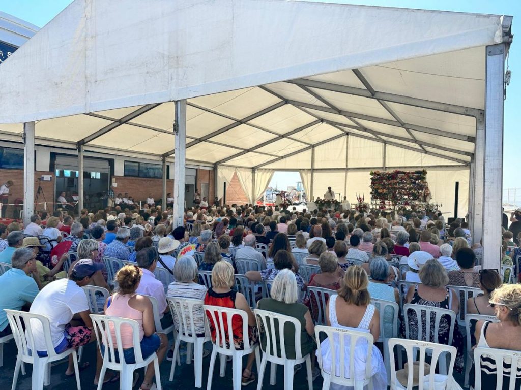 Junto a esa amplia delegación oficial, más de 400 personas llenaban la carpa instalada en el puerto, donde les esperaba, rodeada de flores, la imagen de la Virgen del Carmen.