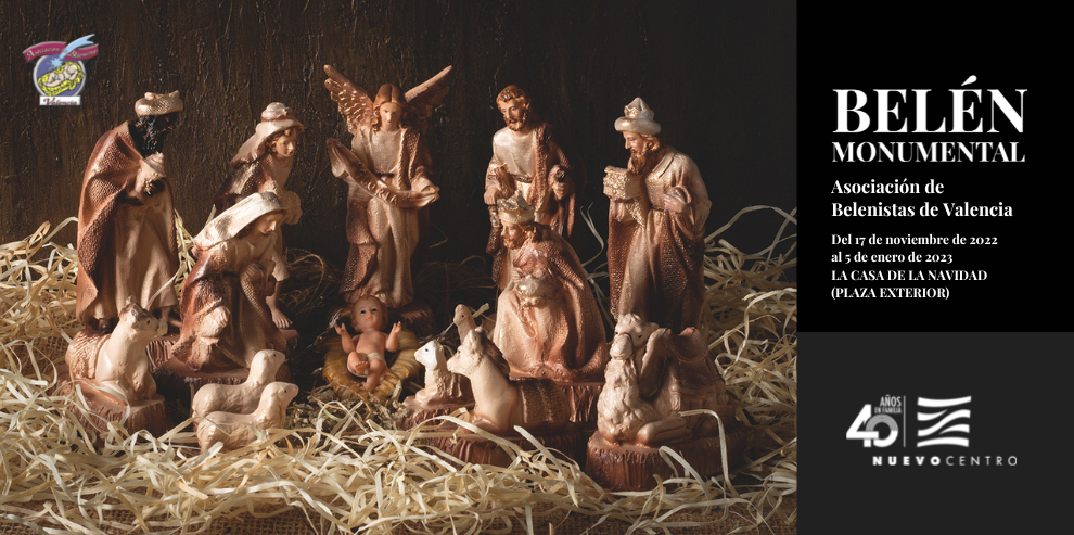 Hablar de la Plaza de la Navidad de Nuevo Centro, es hablar de este monumental Belén, instalado como cada año por la Asociación de Belenistas de Valencia, en él se invierten muchas horas y mucha ilusión, así como diversos materiales para su construcción como la escayola, poliestireno, pintura, luces, figuras de barro de varios artesanos muy conocidos (José L. Mayo, Daniel Alcántara, Hermanos Cerrada, Montserrat Ribes) y enseres de la época.