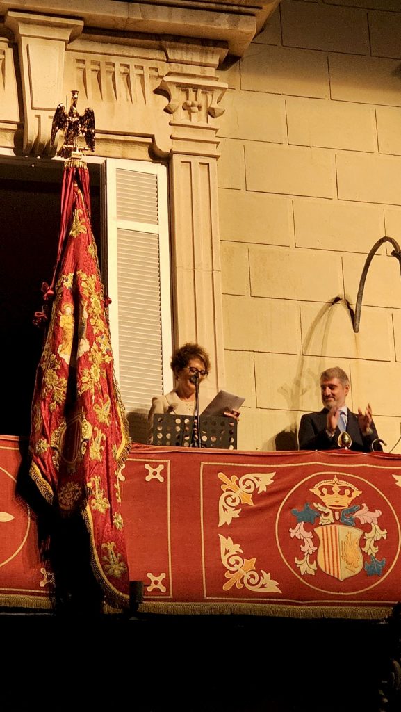 Desde el balcón principal del Ayuntamiento de Orihuela, el alcalde Pepe Vegara pronunció un emotivo discurso en el que evocó la leyenda de la Armengola y el orgullo de pertenencia a la ciudad: “Si un oriolano o una oriolana, se encuentre en el lugar del mundo en que se encuentre, sobre todo si es lejos de Orihuela, oye referir una historia que habla de una mujer increíble que fue capaz con inteligencia y talento de capitanear la reconquista de una ciudad a la que la palabra hermosa no le hacía justicia por insuficiente; una historia en la que dos valientes vestidos de mujer la acompañaron en su labor de generosidad y valentía, y fueron ganando con ella puerta a puerta, muralla a muralla, una de las alcazabas más inexpugnables de cierto antiguo reino; una historia en la que el cielo se alió con sus fieles para marcar e iluminar el camino que los había de llevar a la victoria sobre el que los quería aniquilar; una historia en la que todo un pueblo se unió y se levantó como un solo ser, para ir al encuentro de sí mismo y celebrar lo que era y sobre todo lo que quería ser, ese oriolano, esa oriolana, no tendrá más remedio que reconocerse y sentir en lo más profundo de su alma que el sentimiento de pertenencia a Orihuela es uno de los más poderosos que puede mover el alma de un hombre o una mujer. Ese oriolano esa oriolana se sentirá miembro de aquel pueblo que acompañó a la Armengola en la más hermosa gesta de nuestro acervo legendario”.