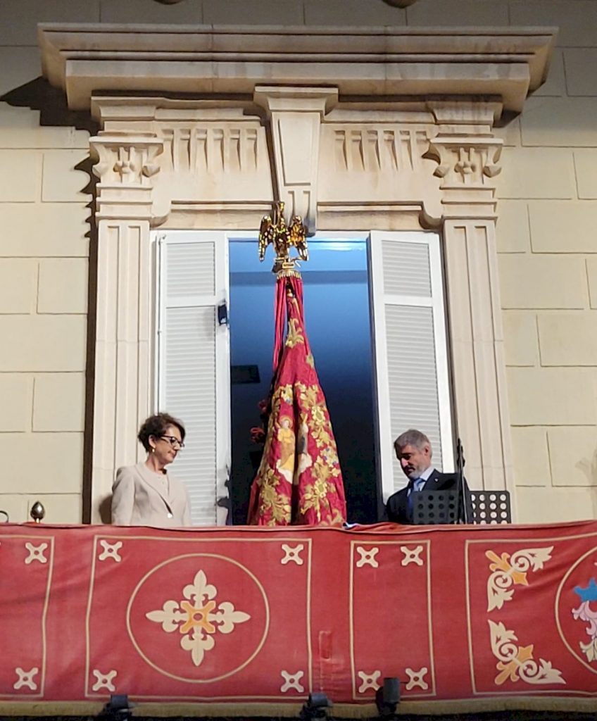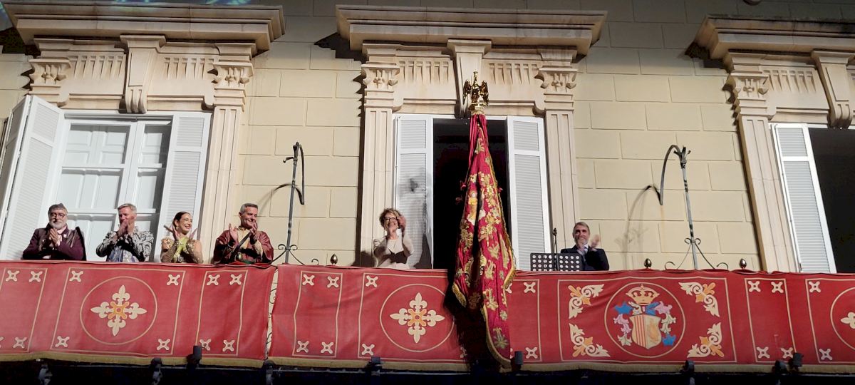 La Gloriosa Enseña del Oriol se expuso esta noche públicamente ante cientos de personas congregadas en la puerta del Ayuntamiento de Orihuela para vivir uno de los actos más emblemáticos de las Fiestas de la Reconquista y de Moros y Cristianos 2025. El alcalde Pepe Vegara ha presidido este acto institucional, junto a la Síndica Portadora de la Gloriosa Enseña del Oriol, María Ángeles Esteban Abad, acompañados por la concejala de Festividades, Rocío Ortuño, así como por el presidente de la Asociación de Fiestas de Moros y Cristianos, Enrique Riquelme, la Armengola, Ana Belén Navarro, y los embajadores Moro y Cristiano, Francisco Javier López Fabregat y Vicente Calderón, respectivamente. Además, de la presencia de la corporación municipal y del resto de autoridades.
