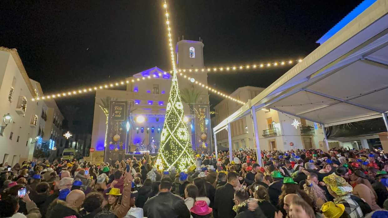 La Nucía despidió el 2024 y dio la bienvenida a 2025 con las tradicionales campanadas y un espectacular castillo de fuegos artificiales en la plaça Major. La gran fiesta de fin de año que comenzó la mañana del martes 31 de diciembre, hizo que la plaça estuviera ambientada durante todo el día.