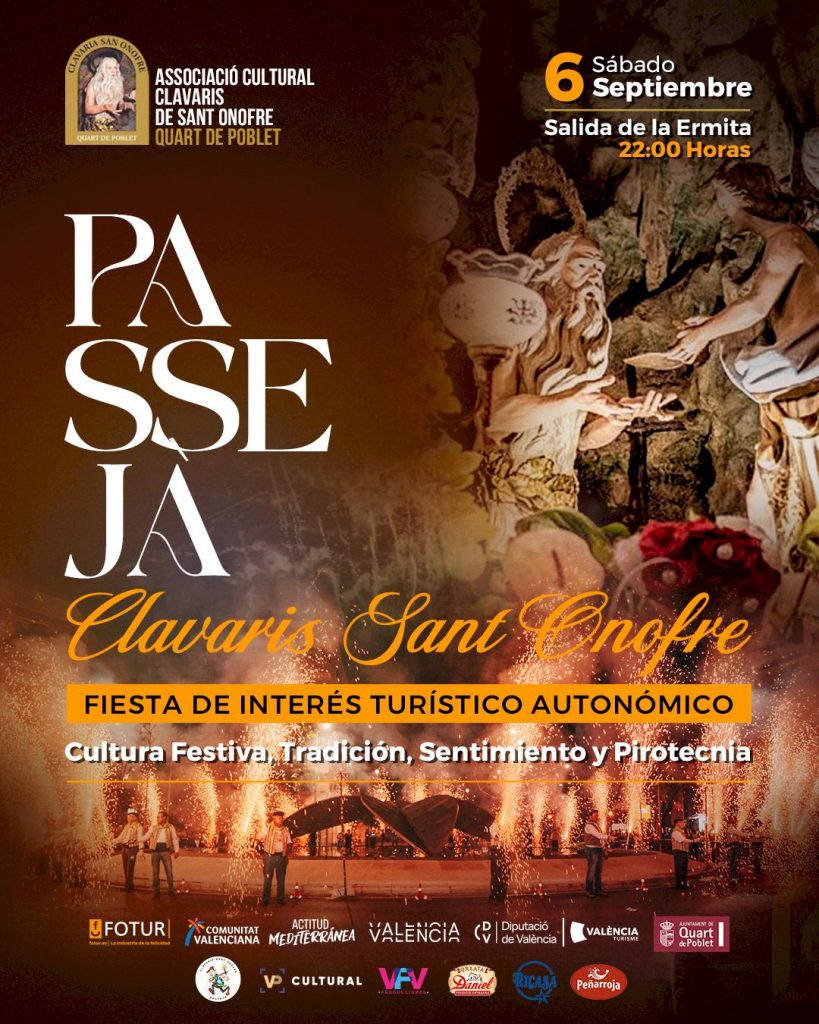 El próximo sábado 6 de septiembre, Quart de Poblet se vestirá de fiesta para celebrar el acto más importante y arraigado de sus fiestas patronales: la Passejà de Sant Onofre, patrón de la localidad. La cita comenzará a las 22:00 horas desde la Ermita de Sant Onofre, dando comienzo a una noche única que combina devoción, pólvora y tradición popular.