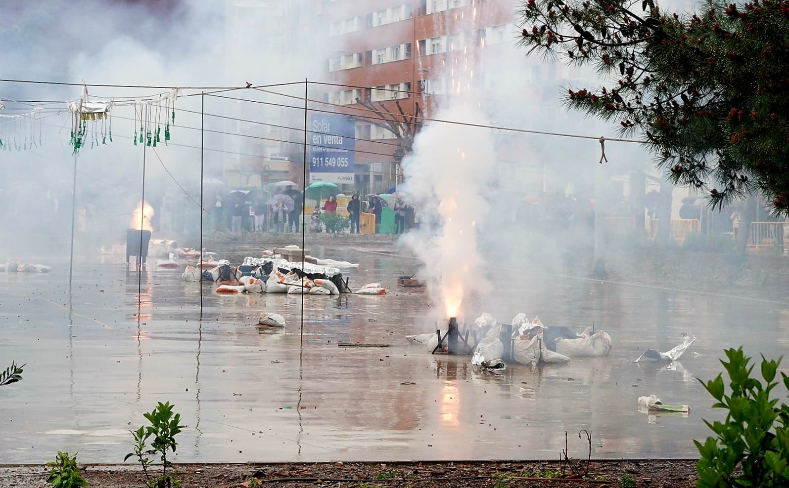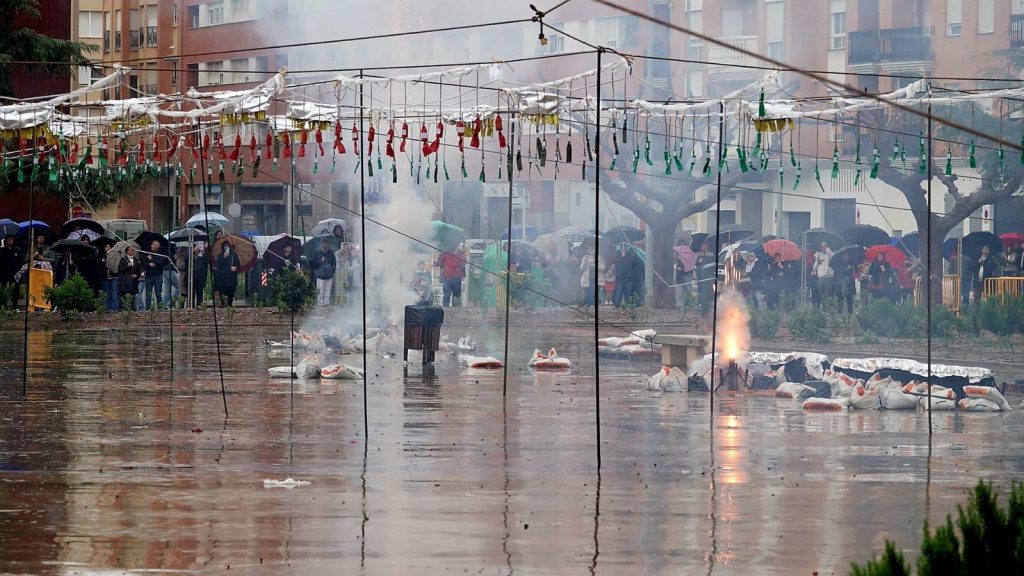 La pólvora y el estruendo han vuelto a ser protagonistas en la Plaza l’Hereu con una nueva mascletà, que, al igual que en jornadas anteriores, ha reunido a vecinos y falleros para disfrutar del espectáculo pirotécnico. A pesar de las inclemencias meteorológicas, la Pirotecnia Martí ha ofrecido una exhibición vibrante, en la que el sonido y la emoción han vuelto a inundar el ambiente festivo.